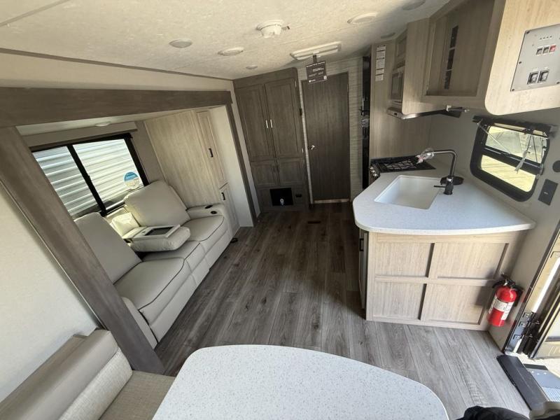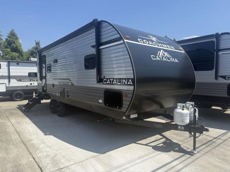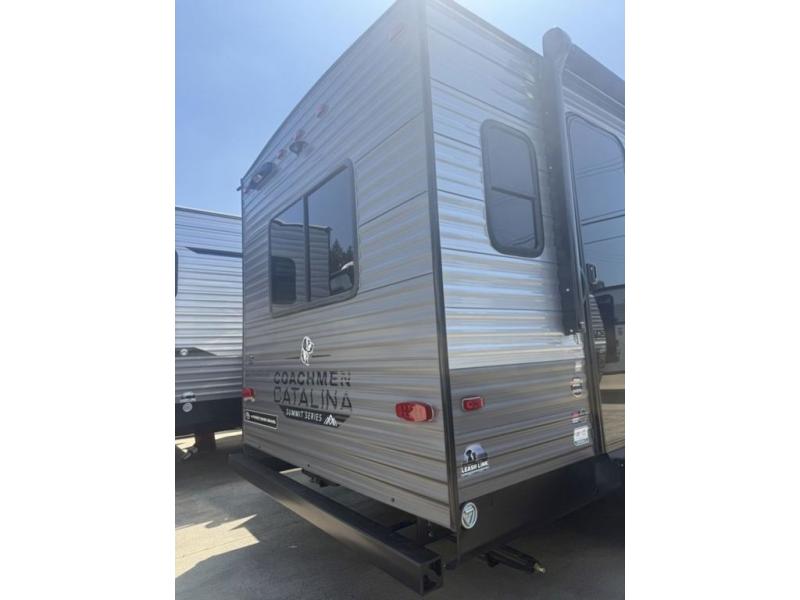 With any Catalina Summit Series 8 by Coachmen you will enjoy an affordable travel trailer packed with at-home comforts! The solid construction includes a Norco electromagnetic powder coated chassis, a seamless Alpha roof membrane, and full length frame outriggers for maximum support and durability. EZ lube axles with leaf spring suspension and self adjusting brakes provide smooth towing from home to campground, and the premium exterior graphics package is sure to turn heads as you travel down the highway. You will love the features included, such as a JBL Aura Cube media center, magnetic baggage door latches, 4,000 lumen interior touch lighting, and the list goes on!