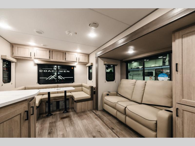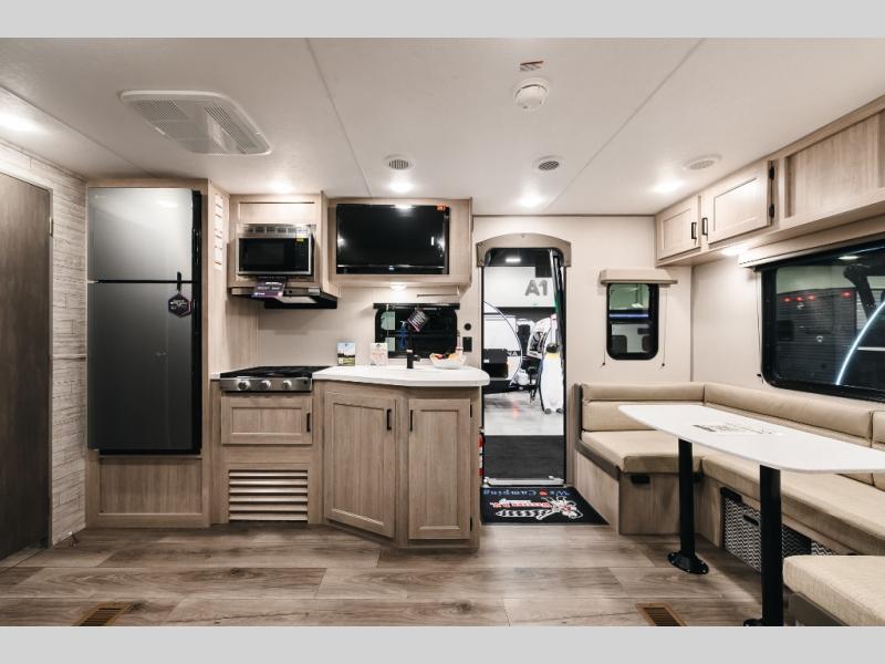 With any Catalina Summit Series 8 by Coachmen you will enjoy an affordable travel trailer packed with at-home comforts! The solid construction includes a Norco electromagnetic powder coated chassis, a seamless Alpha roof membrane, and full length frame outriggers for maximum support and durability. EZ lube axles with leaf spring suspension and self adjusting brakes provide smooth towing from home to campground, and the premium exterior graphics package is sure to turn heads as you travel down the highway. You will love the features included, such as a JBL Aura Cube media center, magnetic baggage door latches, 4,000 lumen interior touch lighting, and the list goes on!