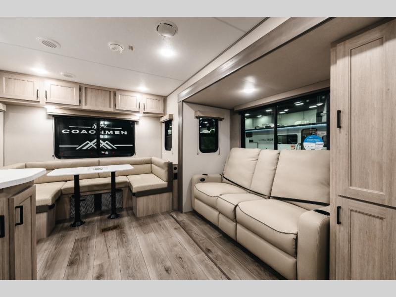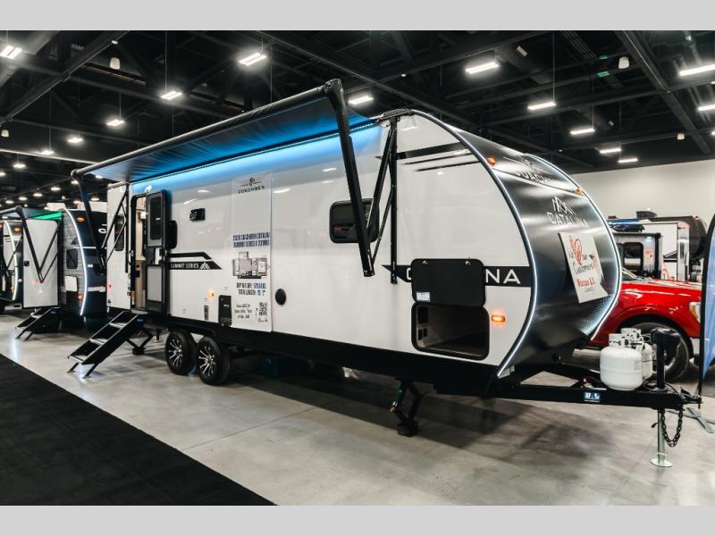 With any Catalina Summit Series 8 by Coachmen you will enjoy an affordable travel trailer packed with at-home comforts! The solid construction includes a Norco electromagnetic powder coated chassis, a seamless Alpha roof membrane, and full length frame outriggers for maximum support and durability. EZ lube axles with leaf spring suspension and self adjusting brakes provide smooth towing from home to campground, and the premium exterior graphics package is sure to turn heads as you travel down the highway. You will love the features included, such as a JBL Aura Cube media center, magnetic baggage door latches, 4,000 lumen interior touch lighting, and the list goes on!