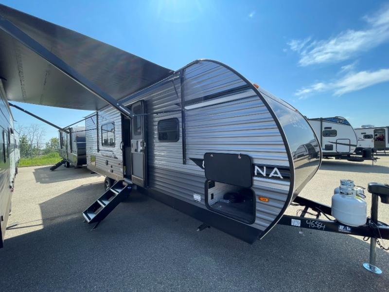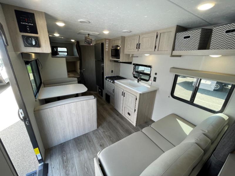 With any Catalina Summit Series 8 by Coachmen you will enjoy an affordable travel trailer packed with at-home comforts! The solid construction includes a Norco electromagnetic powder coated chassis, a seamless Alpha roof membrane, and full length frame outriggers for maximum support and durability. Dexter EZ lube axles with leaf spring suspension and self adjusting brakes provide smooth towing from home to campground, and the premium exterior graphics package is sure to turn heads as you travel down the highway. You will love the features included, such as a JBL Aura Cube media center, magnetic baggage door latches, 4,000 lumen interior touch lighting, LCI One Control, and the list goes on!