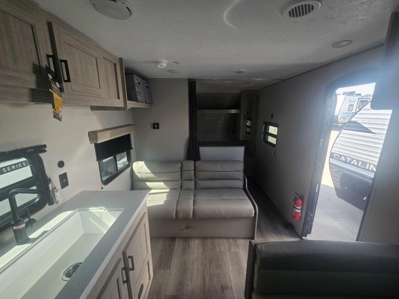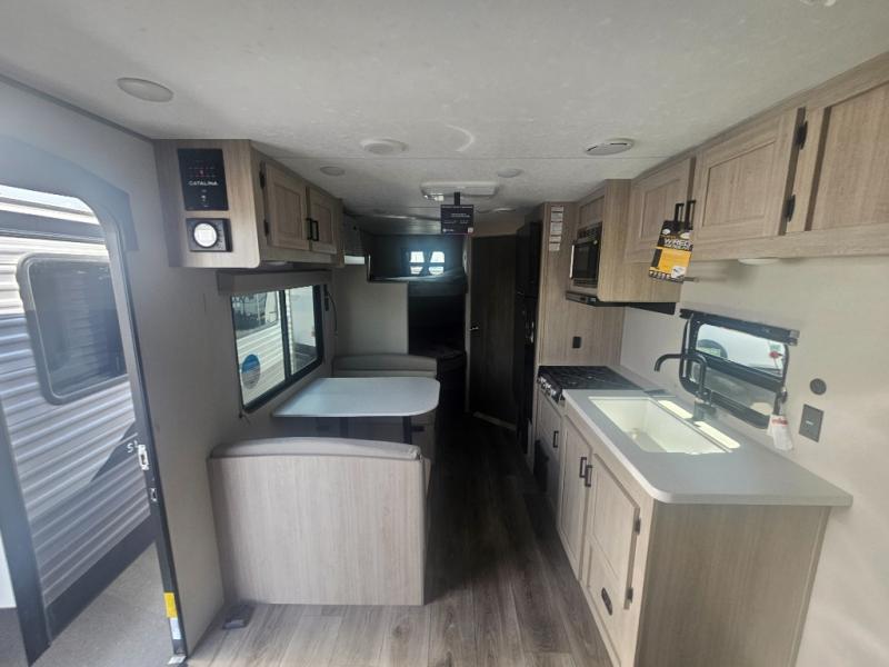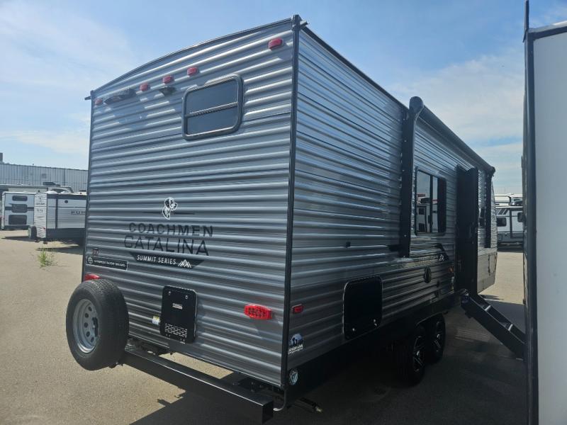 With any Catalina Summit Series 8 by Coachmen you will enjoy an affordable travel trailer packed with at-home comforts! The solid construction includes a Norco electromagnetic powder coated chassis, a seamless Alpha roof membrane, and full length frame outriggers for maximum support and durability. Dexter EZ lube axles with leaf spring suspension and self adjusting brakes provide smooth towing from home to campground, and the premium exterior graphics package is sure to turn heads as you travel down the highway. You will love the features included, such as a JBL Aura Cube media center, magnetic baggage door latches, 4,000 lumen interior touch lighting, LCI One Control, and the list goes on!