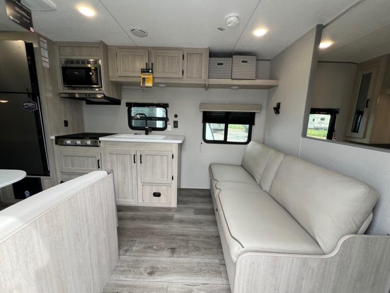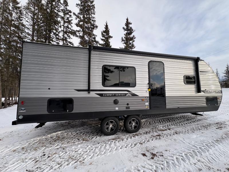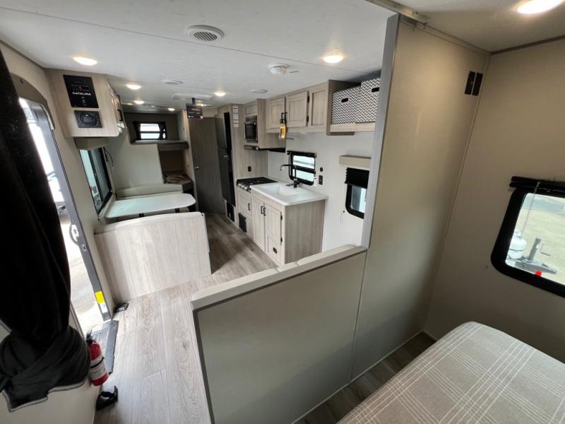 With any Catalina Summit Series 8 by Coachmen you will enjoy an affordable travel trailer packed with at-home comforts! The solid construction includes a Norco electromagnetic powder coated chassis, a seamless Alpha roof membrane, and full length frame outriggers for maximum support and durability. Dexter EZ lube axles with leaf spring suspension and self adjusting brakes provide smooth towing from home to campground, and the premium exterior graphics package is sure to turn heads as you travel down the highway. You will love the features included, such as a JBL Aura Cube media center, magnetic baggage door latches, 4,000 lumen interior touch lighting, LCI One Control, and the list goes on!
