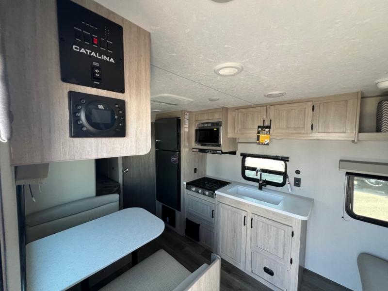 With any Catalina Summit Series 8 by Coachmen you will enjoy an affordable travel trailer packed with at-home comforts! The solid construction includes a Norco electromagnetic powder coated chassis, a seamless Alpha roof membrane, and full length frame outriggers for maximum support and durability. Dexter EZ lube axles with leaf spring suspension and self adjusting brakes provide smooth towing from home to campground, and the premium exterior graphics package is sure to turn heads as you travel down the highway. You will love the features included, such as a JBL Aura Cube media center, magnetic baggage door latches, 4,000 lumen interior touch lighting, LCI One Control, and the list goes on!