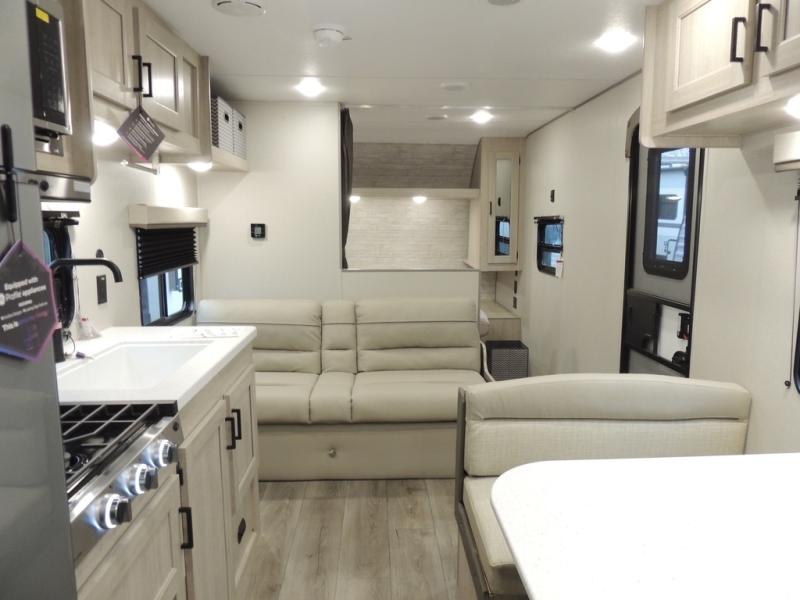 With any Catalina Summit Series 8 by Coachmen you will enjoy an affordable travel trailer packed with at-home comforts! The solid construction includes a Norco electromagnetic powder coated chassis, a seamless Alpha roof membrane, and full length frame outriggers for maximum support and durability. Dexter EZ lube axles with leaf spring suspension and self adjusting brakes provide smooth towing from home to campground, and the premium exterior graphics package is sure to turn heads as you travel down the highway. You will love the features included, such as a JBL Aura Cube media center, magnetic baggage door latches, 4,000 lumen interior touch lighting, LCI One Control, and the list goes on!