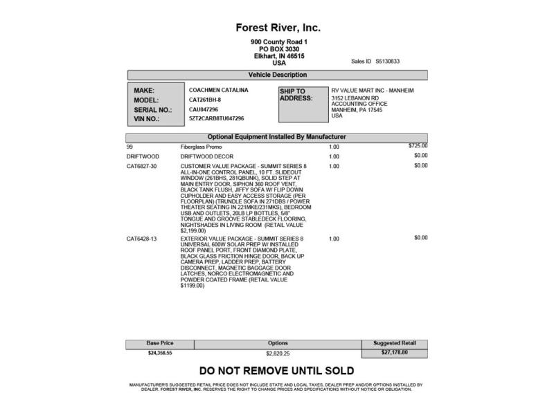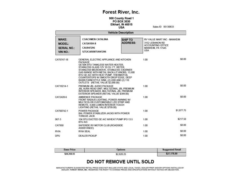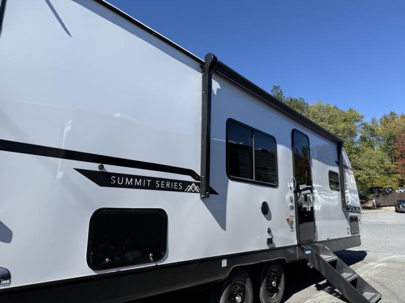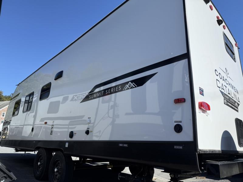 With any Catalina Summit Series 8 by Coachmen you will enjoy an affordable travel trailer packed with at-home comforts! The solid construction includes a Norco electromagnetic powder coated chassis, a seamless Alpha roof membrane, and full length frame outriggers for maximum support and durability. EZ lube axles with leaf spring suspension and self-adjusting brakes provide smooth towing from home to campground, and the premium exterior graphics package is sure to turn heads as you travel down the highway. You will love the features included, such as a JBL Aura Cube media center, magnetic baggage door latches, 4,000 lumen interior touch lighting, and the list goes on!