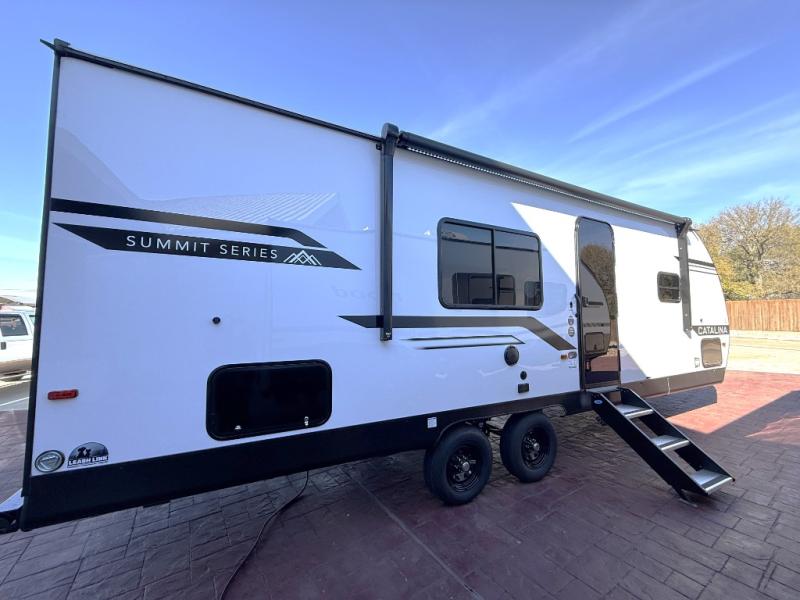 With any Catalina Summit Series 8 by Coachmen you will enjoy an affordable travel trailer packed with at-home comforts! The solid construction includes a Norco electromagnetic powder coated chassis, a seamless Alpha roof membrane, and full length frame outriggers for maximum support and durability. EZ lube axles with leaf spring suspension and self-adjusting brakes provide smooth towing from home to campground, and the premium exterior graphics package is sure to turn heads as you travel down the highway. You will love the features included, such as a JBL Aura Cube media center, magnetic baggage door latches, 4,000 lumen interior touch lighting, and the list goes on!