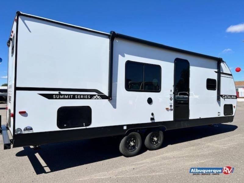 With any Catalina Summit Series 8 by Coachmen you will enjoy an affordable travel trailer packed with at-home comforts! The solid construction includes a Norco electromagnetic powder coated chassis, a seamless Alpha roof membrane, and full length frame outriggers for maximum support and durability. EZ lube axles with leaf spring suspension and self-adjusting brakes provide smooth towing from home to campground, and the premium exterior graphics package is sure to turn heads as you travel down the highway. You will love the features included, such as a JBL Aura Cube media center, magnetic baggage door latches, 4,000 lumen interior touch lighting, and the list goes on!