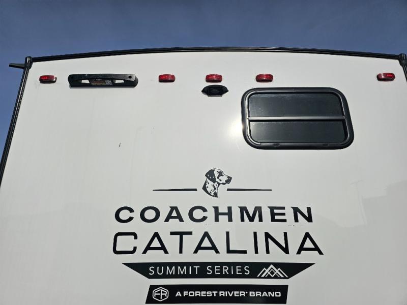 With any Catalina Summit Series 8 by Coachmen you will enjoy an affordable travel trailer packed with at-home comforts! The solid construction includes a Norco electromagnetic powder coated chassis, a seamless Alpha roof membrane, and full length frame outriggers for maximum support and durability. EZ lube axles with leaf spring suspension and self-adjusting brakes provide smooth towing from home to campground, and the premium exterior graphics package is sure to turn heads as you travel down the highway. You will love the features included, such as a JBL Aura Cube media center, magnetic baggage door latches, 4,000 lumen interior touch lighting, and the list goes on!