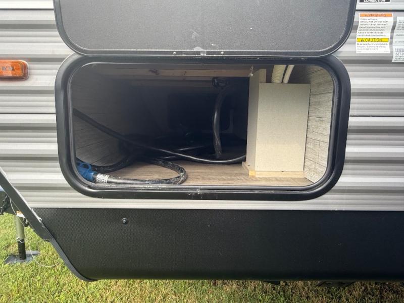 This is the perfect mid-size travel trailer for you and your family! The 46" x 74" double-size bunk beds with lower interior storage offer a comfortable sleeping space for the kids and you will have your own private sleeping space with the 60" x 74" queen bed in the front private bedroom. Freshen up each morning in the rear corner bathroom with the tub/shower and a mirror to get ready each morning. You can prepare your best home cooked meals with the GE stainless three burner cooktop and GE stainless 10.7 cu. ft. 12V refrigerator, then enjoy them together at the booth dinette. The sofa is near the entertainment center for a relaxing movie night. Don't leave any of your outdoor gear behind either, thanks to the front pass-through storage area and the exterior outside storage area. You could even add the optional outside camper kitchen to grill the catch of the day on the pull out griddle!