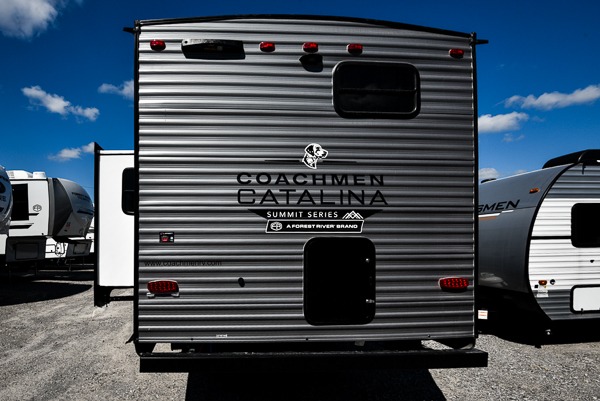 With any Catalina Summit Series 8 by Coachmen you will enjoy an affordable travel trailer packed with at-home comforts! The solid construction includes a Norco electromagnetic powder coated chassis, a seamless Alpha roof membrane, and full length frame outriggers for maximum support and durability. EZ lube axles with leaf spring suspension and self-adjusting brakes provide smooth towing from home to campground, and the premium exterior graphics package is sure to turn heads as you travel down the highway. You will love the features included, such as a JBL Aura Cube media center, magnetic baggage door latches, 4,000 lumen interior touch lighting, and the list goes on!