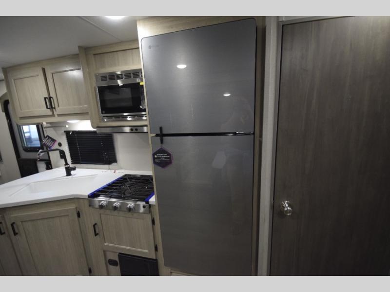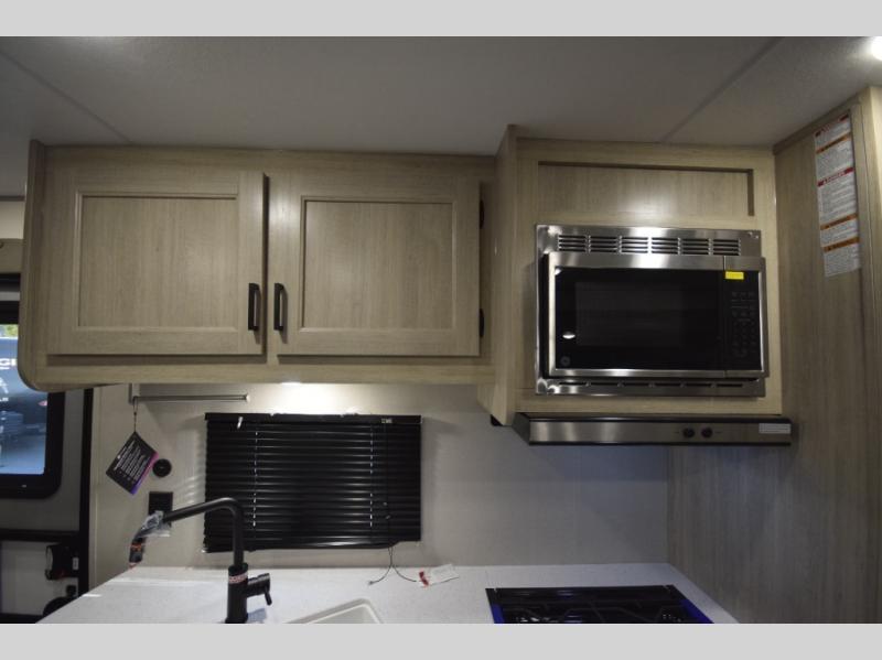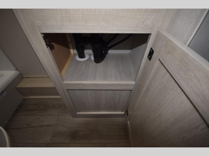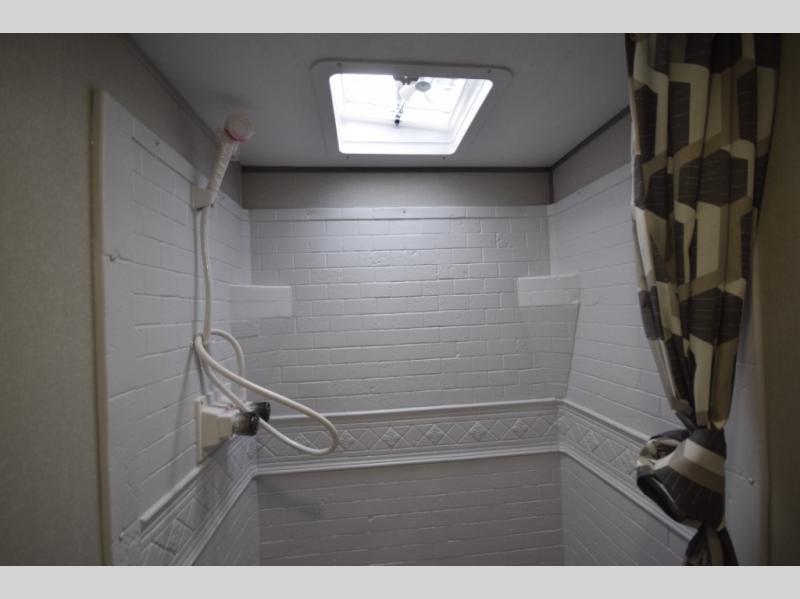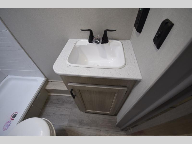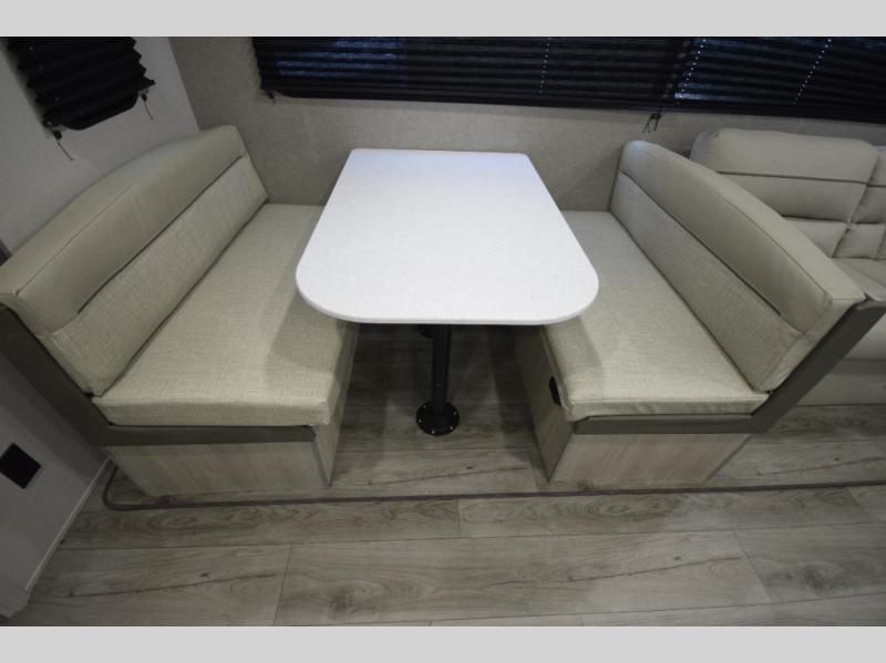 The rear corner bathroom makes freshening up easy, with a tub/shower combo and mirror to help you get ready for the day’s adventures. After a morning hike or afternoon swim, gather around the booth dinette for meals, games, or planning your next destination.