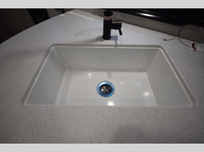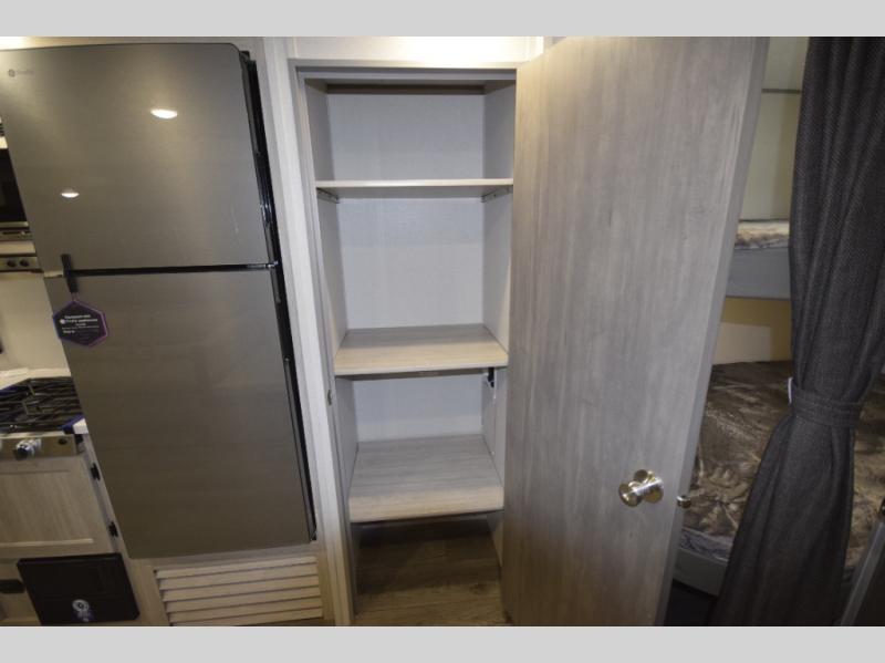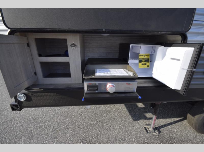 When it’s time to relax, the comfortable sofa sits right across from the entertainment center, making movie nights in the RV feel just like home. And with pass-through storage up front and additional exterior storage, you’ll have room for bikes, fishing poles, camp chairs, and everything else you need to fuel your family’s adventure.