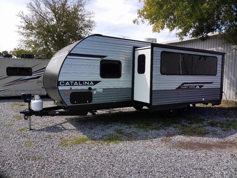 With any Catalina Summit Series 8 by Coachmen you will enjoy an affordable travel trailer packed with at-home comforts! The solid construction includes a Norco electromagnetic powder coated chassis, a seamless Alpha roof membrane, and full length frame outriggers for maximum support and durability. EZ lube axles with leaf spring suspension and self-adjusting brakes provide smooth towing from home to campground, and the premium exterior graphics package is sure to turn heads as you travel down the highway. You will love the features included, such as a JBL Aura Cube media center, magnetic baggage door latches, 4,000 lumen interior touch lighting, and the list goes on!