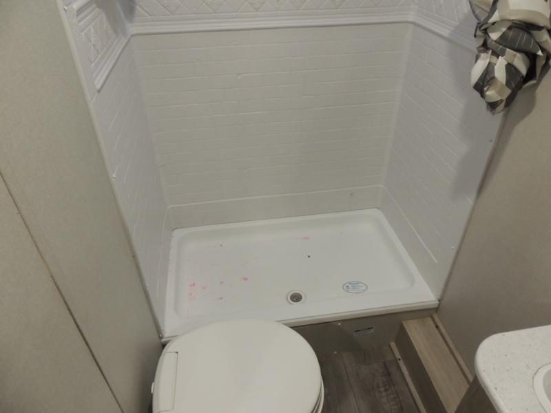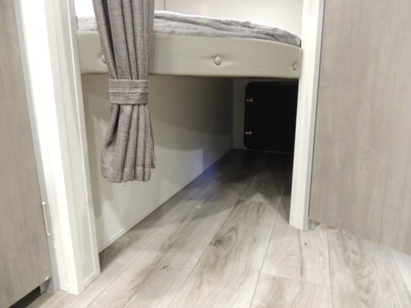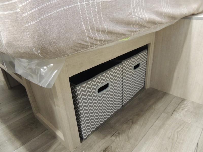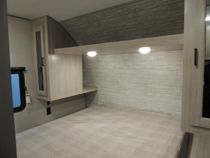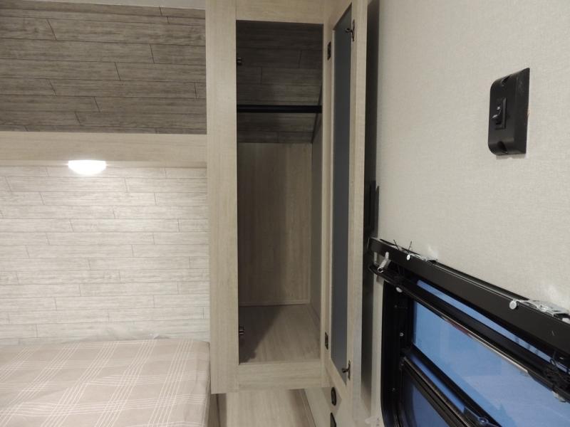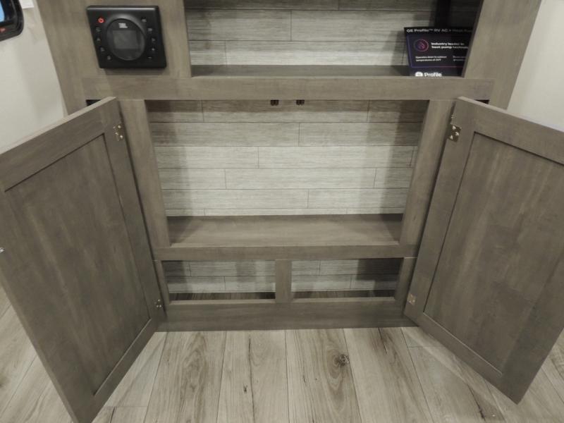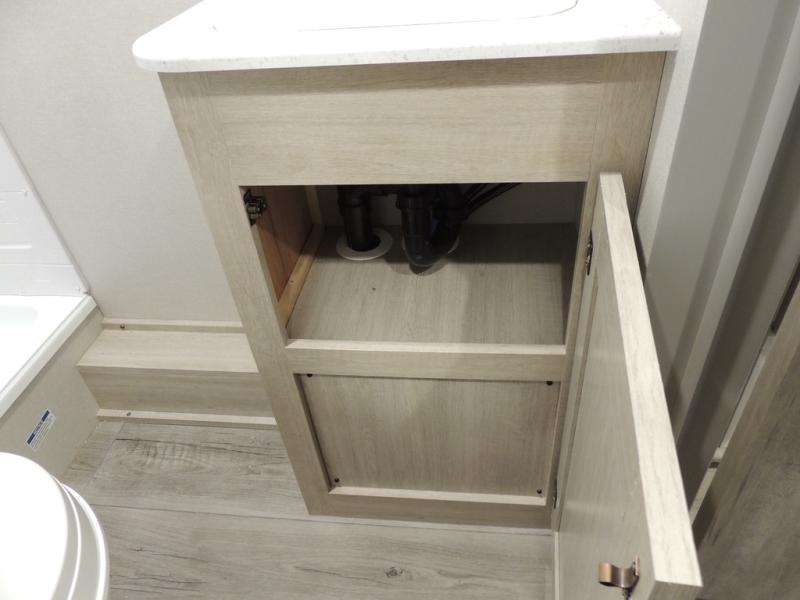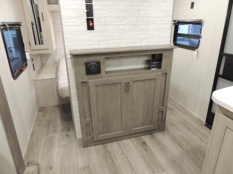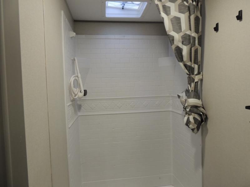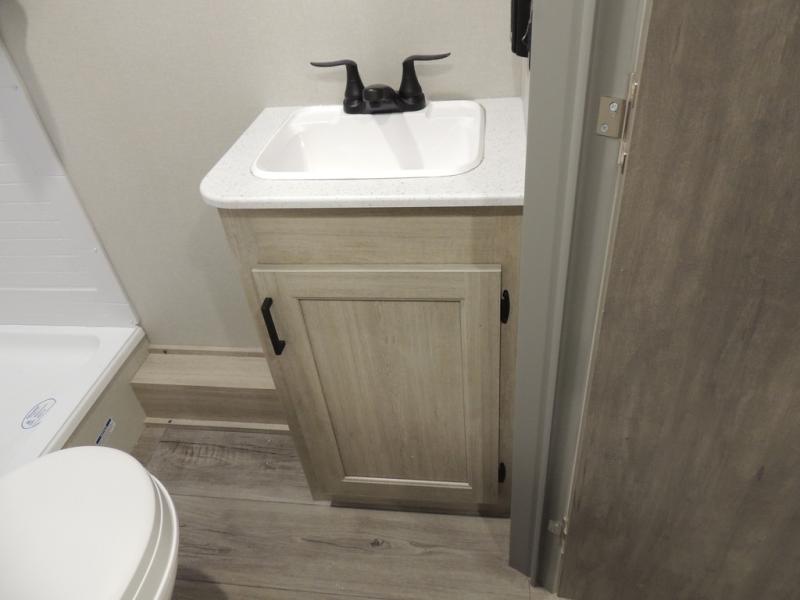 This is the perfect mid-size travel trailer for you and your family! The 46" x 74" double-size bunk beds with lower interior storage offer a comfortable sleeping space for the kids and you will have your own private sleeping space with the 60" x 74" queen bed in the front private bedroom. Freshen up each morning in the rear corner bathroom with the tub/shower and a mirror to get ready each morning. You can prepare your best home cooked meals with the GE stainless three burner cooktop and GE stainless 10.7 cu. ft. 12V refrigerator, then enjoy them together at the booth dinette. The sofa is near the entertainment center for a relaxing movie night. Don't leave any of your outdoor gear behind either, thanks to the front pass-through storage area and the exterior outside storage area. You could even add the optional outside camper kitchen to grill the catch of the day on the pull out griddle!