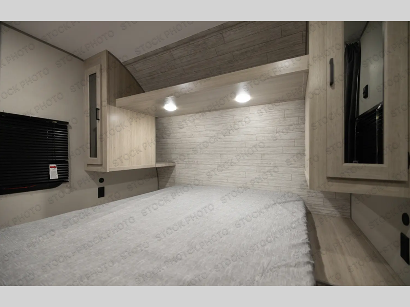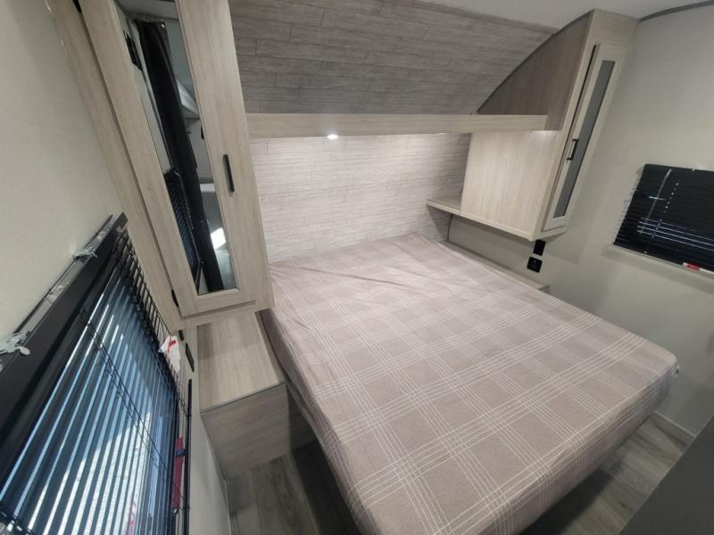 This is the perfect mid-size travel trailer for you and your family! The 46" x 74" double-size bunk beds with lower interior storage offer a comfortable sleeping space for the kids and you will have your own private sleeping space with the 60" x 74" queen bed in the front bedroom. Freshen up each morning in the rear corner bathroom with the tub/shower and a mirror to get ready each morning. You can prepare your best home cooked meals with the GE stainless three burner cooktop and GE stainless 10.7 cu. ft. 12V refrigerator, then enjoy them together at the booth dinette. The sofa is near the entertainment center for a relaxing movie night. Don't leave any of your outdoor gear behind either, thanks to the front pass-through storage area and the exterior outside storage area. You could even add the optional outside camper kitchen to grill the catch of the day on the pull out griddle!