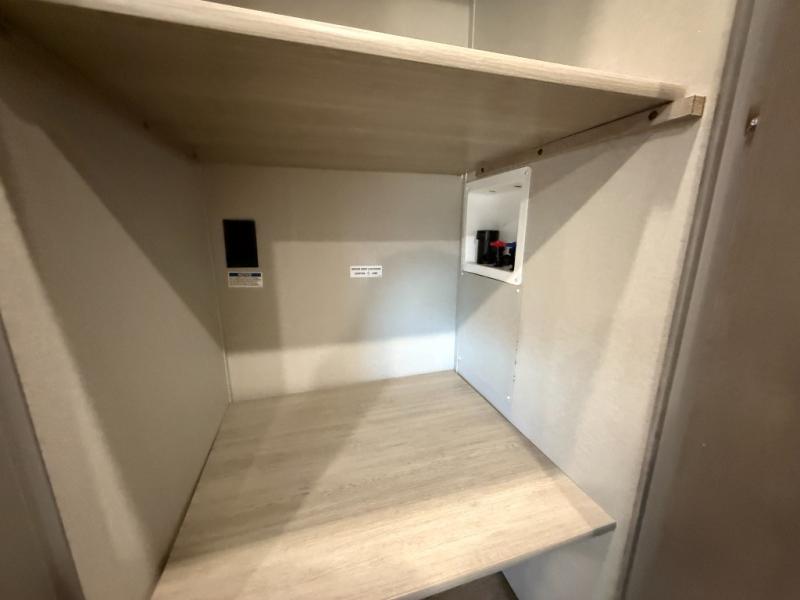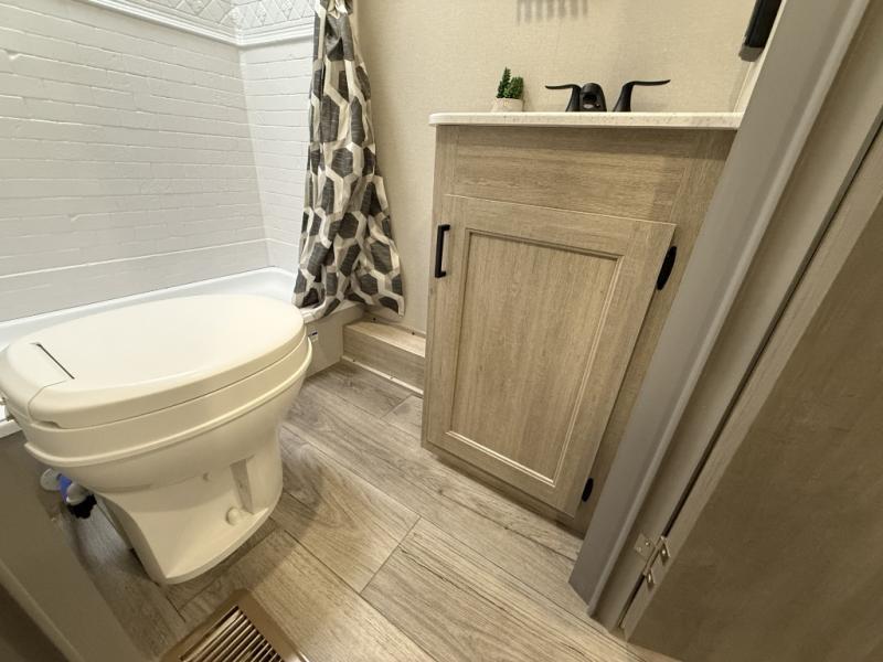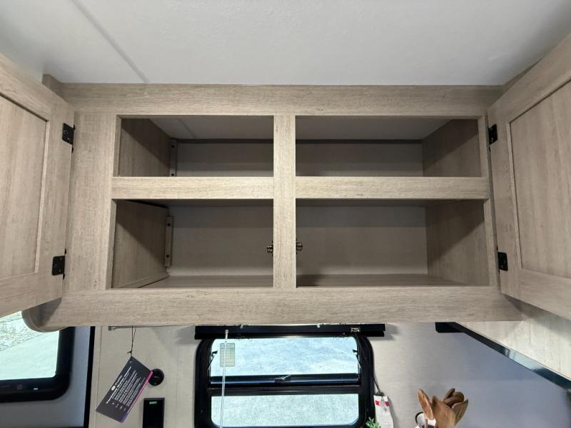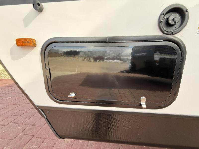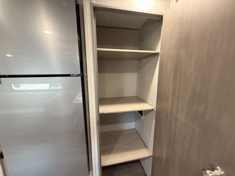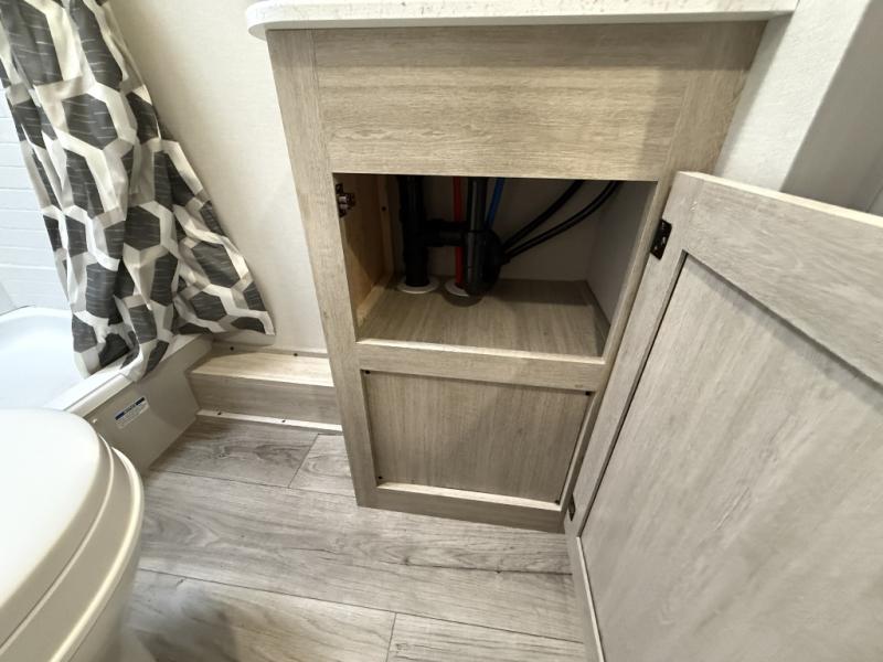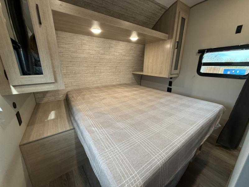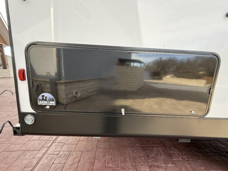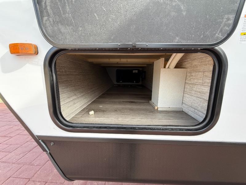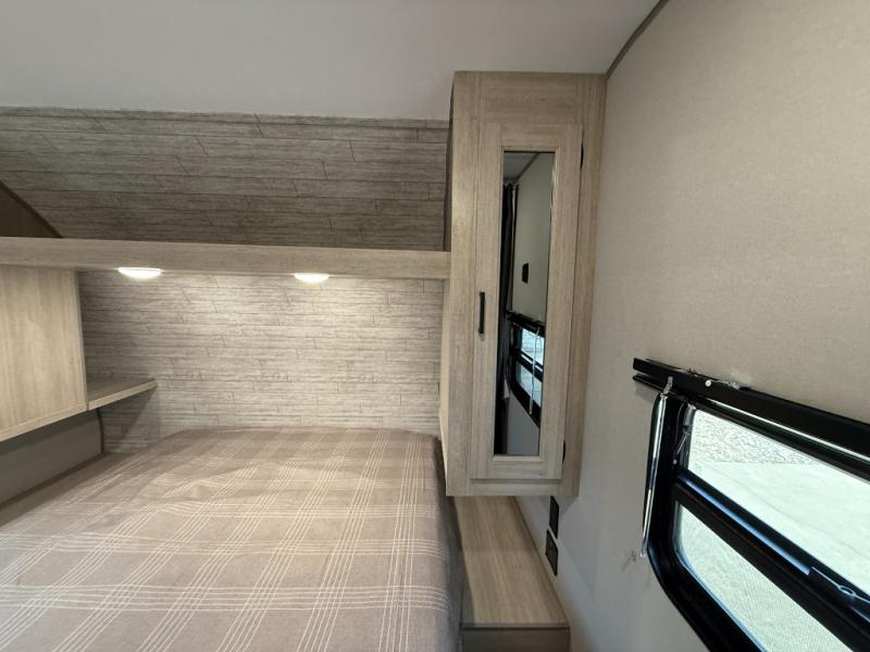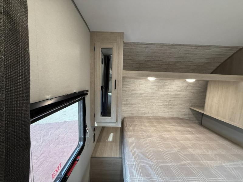 This is the perfect mid-size travel trailer for you and your family! The 46" x 74" double-size bunk beds with lower interior storage offer a comfortable sleeping space for the kids and you will have your own private sleeping space with the 60" x 74" queen bed in the front bedroom. Freshen up each morning in the rear corner bathroom with the tub/shower and a mirror to get ready each morning. You can prepare your best home cooked meals with the GE stainless three burner cooktop and GE stainless 10.7 cu. ft. 12V refrigerator, then enjoy them together at the booth dinette. The sofa is near the entertainment center for a relaxing movie night. Don't leave any of your outdoor gear behind either, thanks to the front pass-through storage area and the exterior outside storage area. You could even add the optional outside camper kitchen to grill the catch of the day on the pull out griddle!