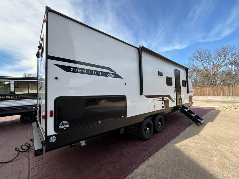 With any Catalina Summit Series 8 by Coachmen you will enjoy an affordable travel trailer packed with at-home comforts! The solid construction includes a Norco electromagnetic powder coated chassis, a seamless Alpha roof membrane, and full length frame outriggers for maximum support and durability. EZ lube axles with leaf spring suspension and self-adjusting brakes provide smooth towing from home to campground, and the premium exterior graphics package is sure to turn heads as you travel down the highway. You will love the features included, such as a JBL Aura Cube media center, magnetic baggage door latches, 4,000 lumen interior touch lighting, and the list goes on!
