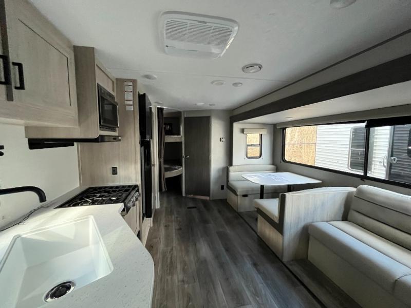 Step inside the Catalina Summit Series 8 261BHS and discover a spacious, well-laid-out interior that accommodates both relaxation and activity. The open floorplan creates a welcoming living area with comfortable seating and flexible space for family time, card games, or movie nights.