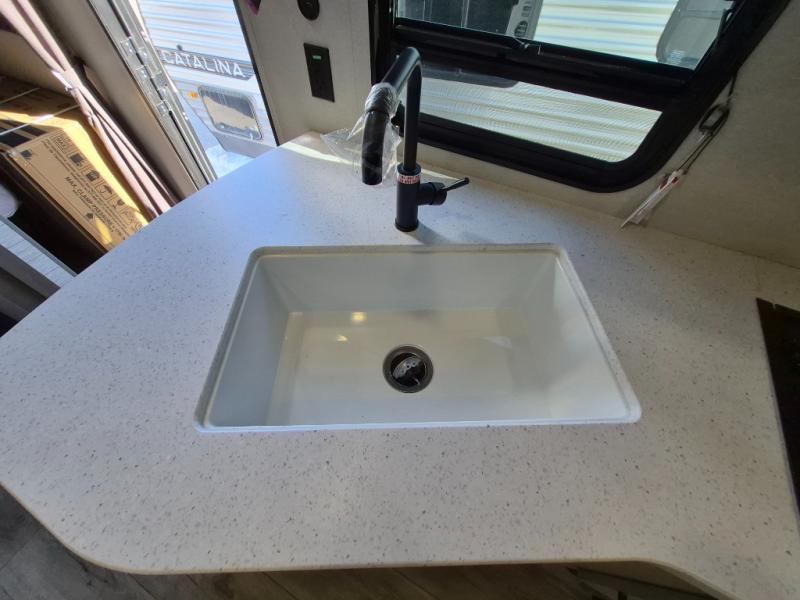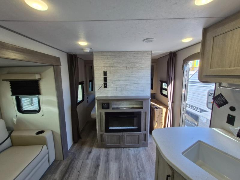 With any Catalina Summit Series 8 by Coachmen you will enjoy an affordable travel trailer packed with at-home comforts! The solid construction includes a Norco electromagnetic powder coated chassis, a seamless Alpha roof membrane, and full length frame outriggers for maximum support and durability. EZ lube axles with leaf spring suspension and self-adjusting brakes provide smooth towing from home to campground, and the premium exterior graphics package is sure to turn heads as you travel down the highway. You will love the features included, such as a JBL Aura Cube media center, magnetic baggage door latches, 4,000 lumen interior touch lighting, and the list goes on!