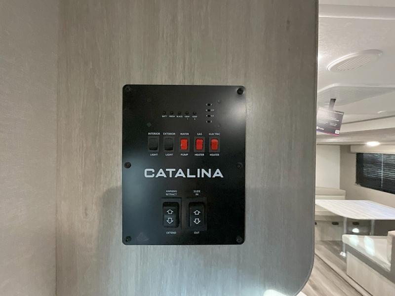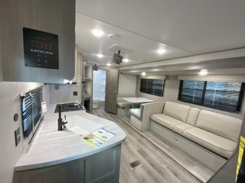 With any Catalina Summit Series 8 by Coachmen you will enjoy an affordable travel trailer packed with at-home comforts! The solid construction includes a Norco electromagnetic powder coated chassis, a seamless Alpha roof membrane, and full length frame outriggers for maximum support and durability. EZ lube axles with leaf spring suspension and self-adjusting brakes provide smooth towing from home to campground, and the premium exterior graphics package is sure to turn heads as you travel down the highway. You will love the features included, such as a JBL Aura Cube media center, magnetic baggage door latches, 4,000 lumen interior touch lighting, and the list goes on!