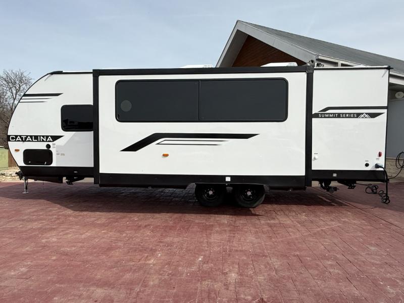 With any Catalina Summit Series 8 by Coachmen you will enjoy an affordable travel trailer packed with at-home comforts! The solid construction includes a Norco electromagnetic powder coated chassis, a seamless Alpha roof membrane, and full length frame outriggers for maximum support and durability. EZ lube axles with leaf spring suspension and self-adjusting brakes provide smooth towing from home to campground, and the premium exterior graphics package is sure to turn heads as you travel down the highway. You will love the features included, such as a JBL Aura Cube media center, magnetic baggage door latches, 4,000 lumen interior touch lighting, and the list goes on!