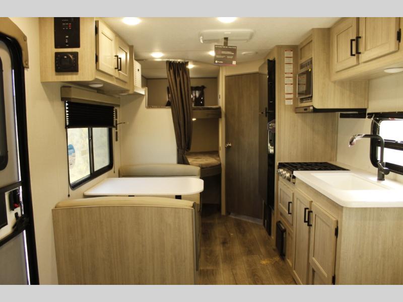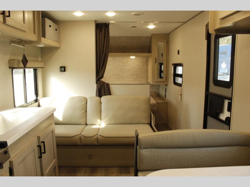 With any Catalina Summit Series 8 by Coachmen you will enjoy an affordable travel trailer packed with at-home comforts! The solid construction includes a Norco electromagnetic powder coated chassis, a seamless Alpha roof membrane, and full length frame outriggers for maximum support and durability. EZ lube axles with leaf spring suspension and self-adjusting brakes provide smooth towing from home to campground, and the premium exterior graphics package is sure to turn heads as you travel down the highway. You will love the features included, such as a JBL Aura Cube media center, magnetic baggage door latches, 4,000 lumen interior touch lighting, and the list goes on!