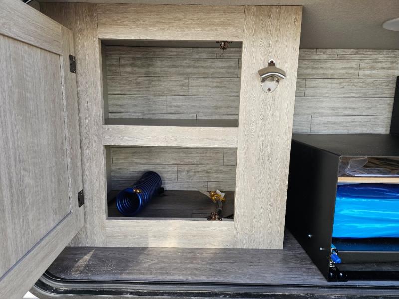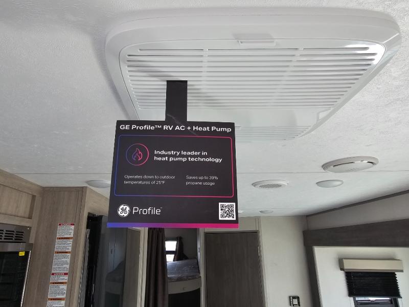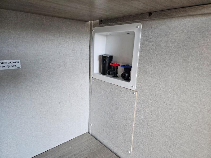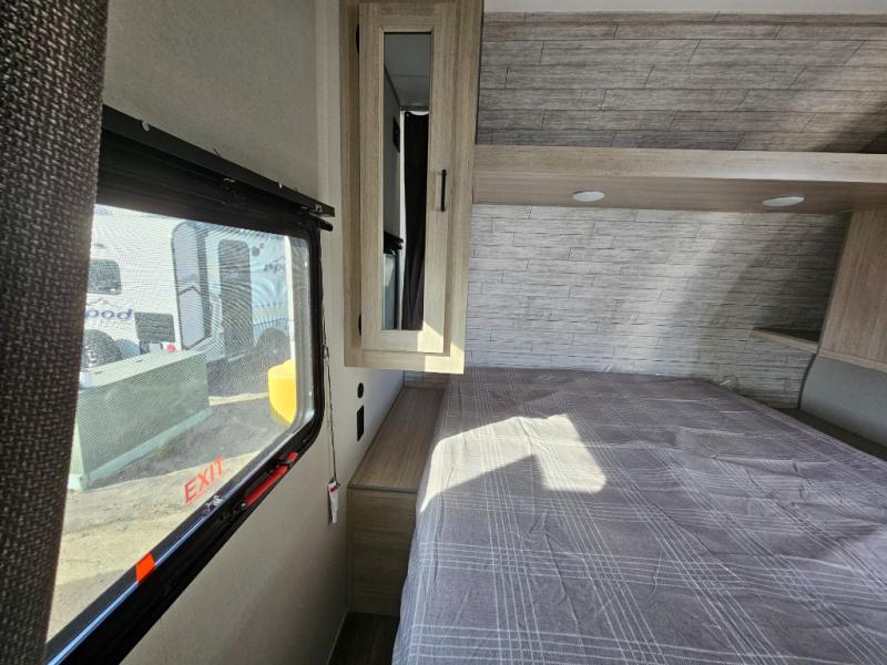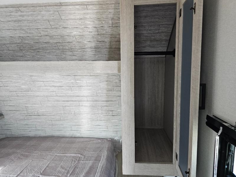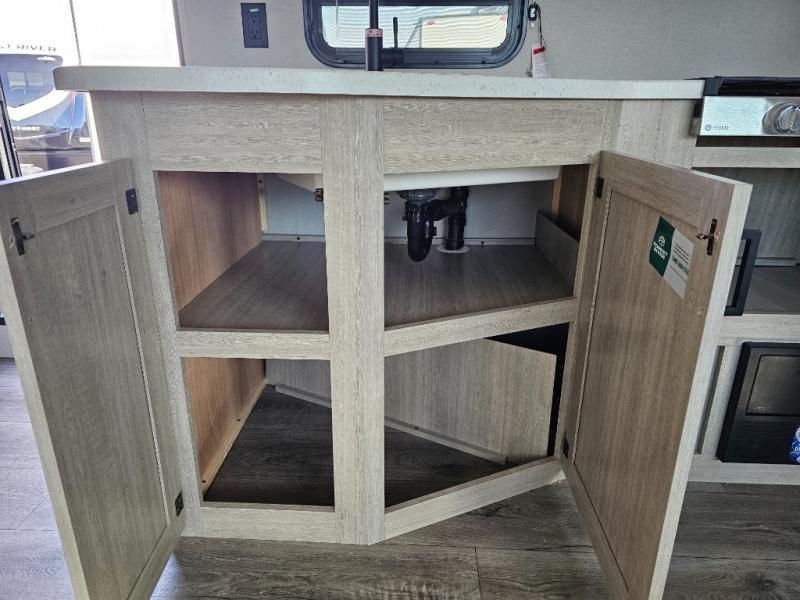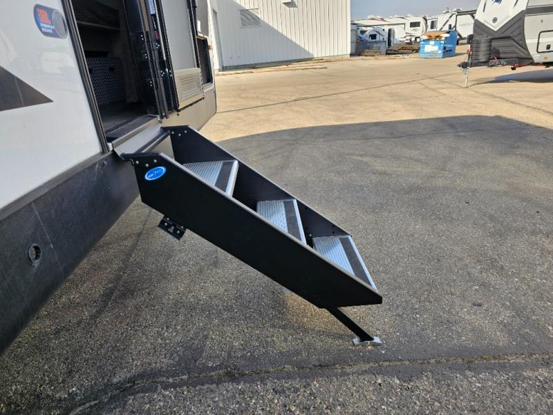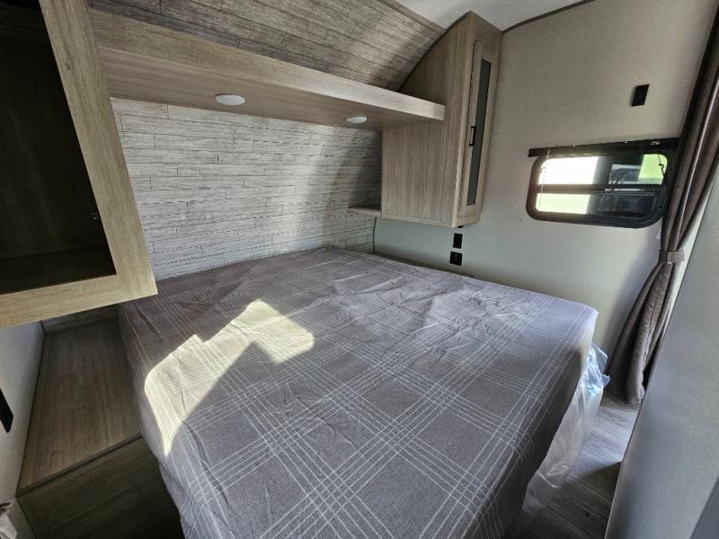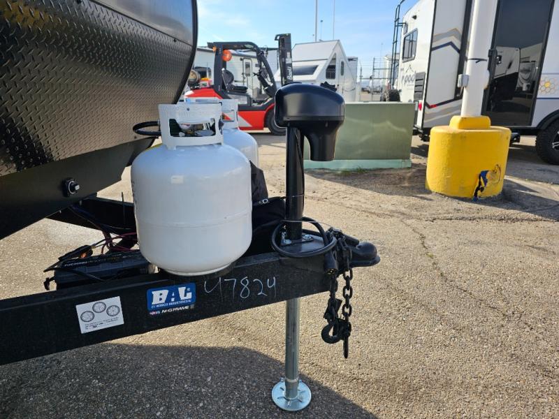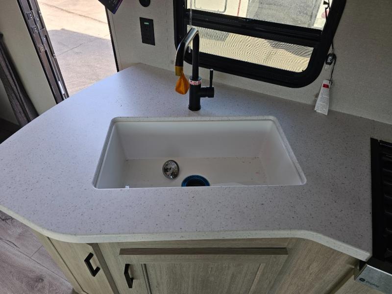 This is the perfect mid-size travel trailer for you and your family! The 46" x 74" double-size bunk beds with lower interior storage offer a comfortable sleeping space for the kids and you will have your own private sleeping space with the 60" x 74" queen bed in the front bedroom. Freshen up each morning in the rear corner bathroom with the tub/shower and a mirror to get ready each morning. You can prepare your best home cooked meals with the GE stainless three burner cooktop and GE stainless 10.7 cu. ft. 12V refrigerator, then enjoy them together at the booth dinette. The sofa is near the entertainment center for a relaxing movie night. Don't leave any of your outdoor gear behind either, thanks to the front pass-through storage area and the exterior outside storage area. You could even add the optional outside camper kitchen to grill the catch of the day on the pull out griddle!