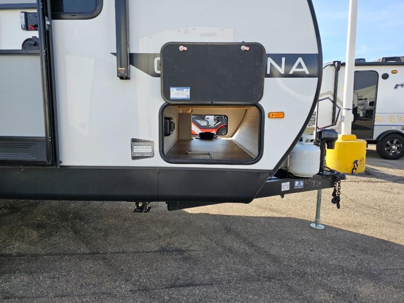 With any Catalina Summit Series 8 by Coachmen you will enjoy an affordable travel trailer packed with at-home comforts! The solid construction includes a Norco electromagnetic powder coated chassis, a seamless Alpha roof membrane, and full length frame outriggers for maximum support and durability. EZ lube axles with leaf spring suspension and self-adjusting brakes provide smooth towing from home to campground, and the premium exterior graphics package is sure to turn heads as you travel down the highway. You will love the features included, such as a JBL Aura Cube media center, magnetic baggage door latches, 4,000 lumen interior touch lighting, and the list goes on!