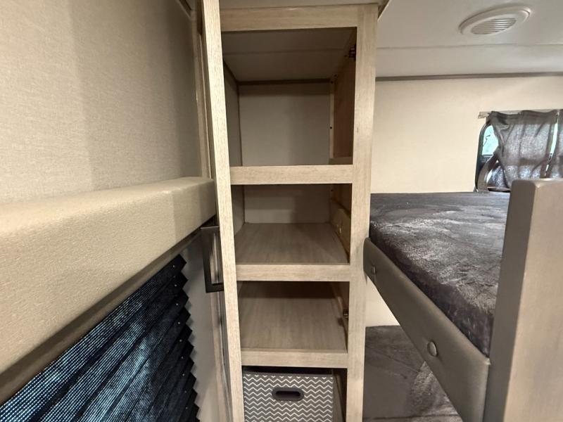 Rear Bunkhouse: Features double-size bunks with steps and a wardrobe.