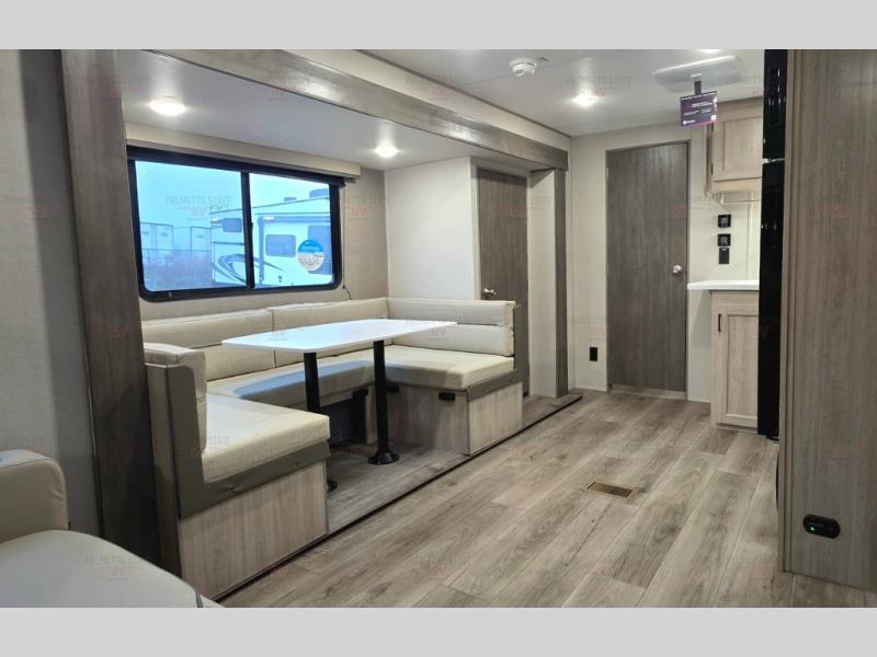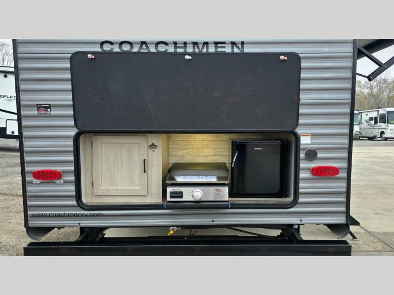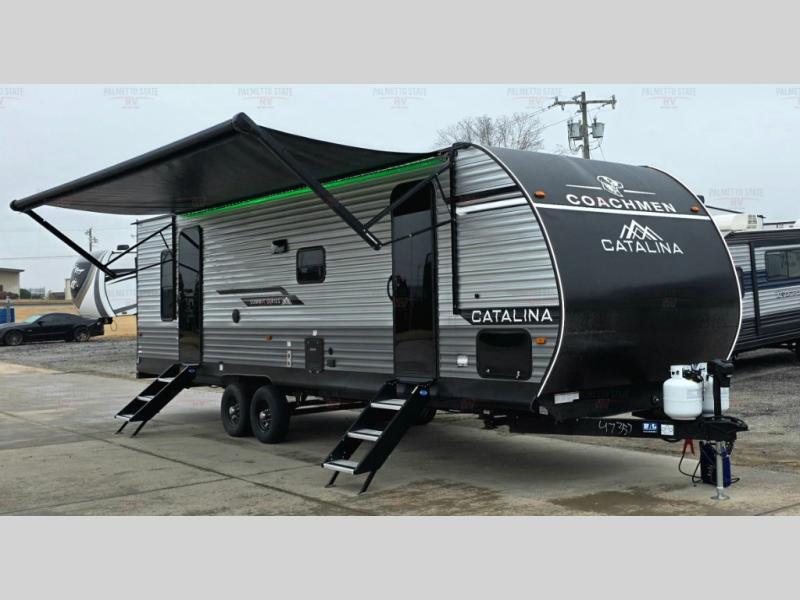 With any Catalina Summit Series 8 by Coachmen you will enjoy an affordable travel trailer packed with at-home comforts! The solid construction includes a Norco electromagnetic powder coated chassis, a seamless Alpha roof membrane, and full length frame outriggers for maximum support and durability. EZ lube axles with leaf spring suspension and self-adjusting brakes provide smooth towing from home to campground, and the premium exterior graphics package is sure to turn heads as you travel down the highway. You will love the features included, such as a JBL Aura Cube media center, magnetic baggage door latches, 4,000 lumen interior touch lighting, and the list goes on!