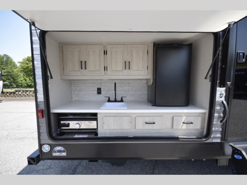 Optional full-size exterior camp kitchen (replaces lower bunk) for grilling under the stars
