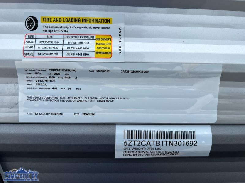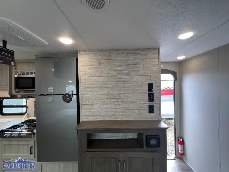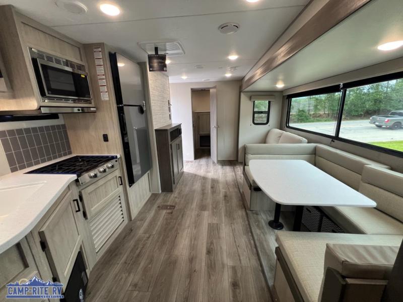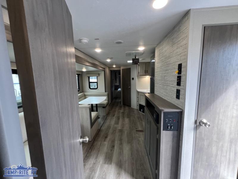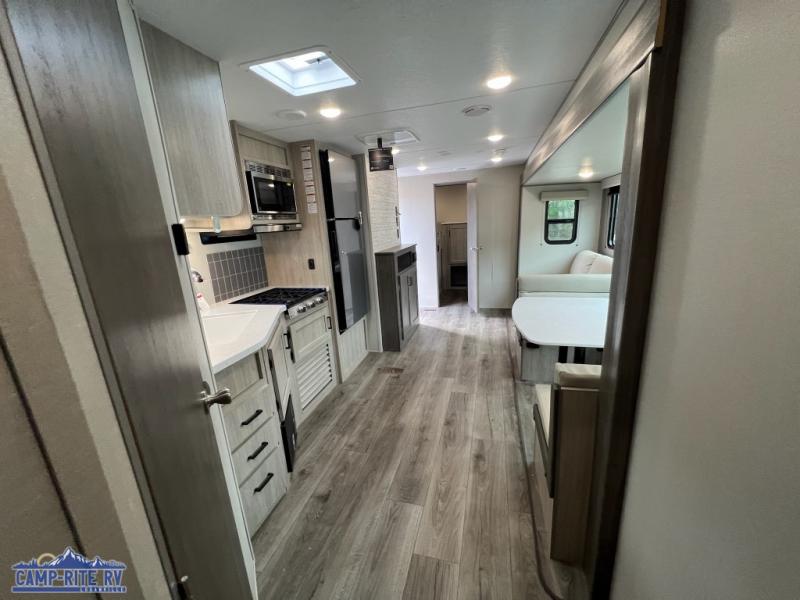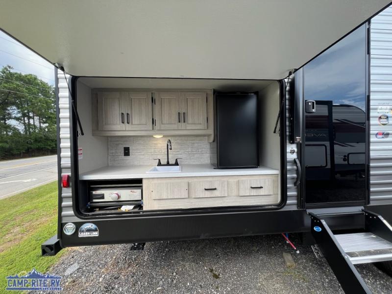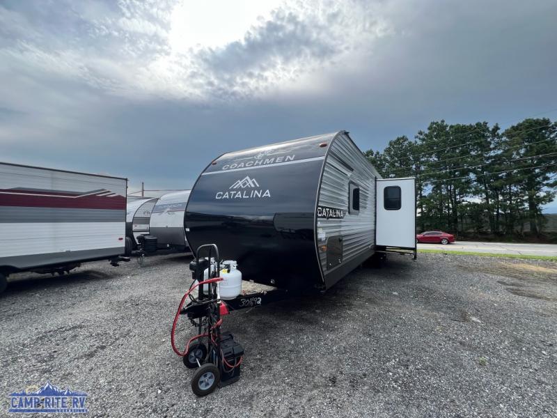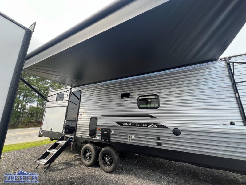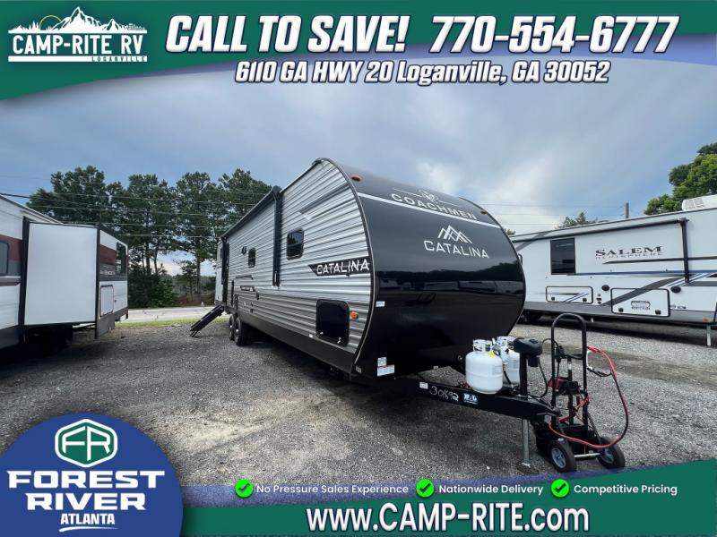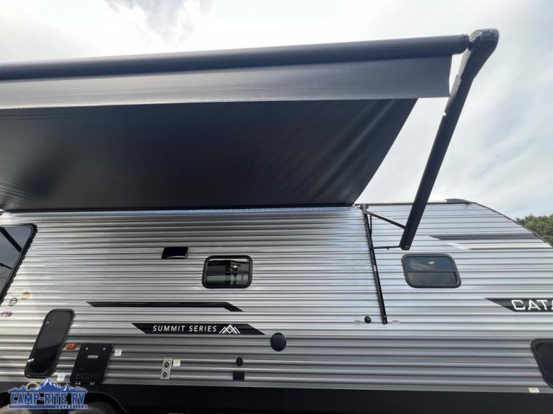 With any Catalina Summit Series 8 by Coachmen you will enjoy an affordable travel trailer packed with at-home comforts! The solid construction includes a Norco electromagnetic powder coated chassis, a seamless Alpha roof membrane, and full length frame outriggers for maximum support and durability. EZ lube axles with leaf spring suspension and self adjusting brakes provide smooth towing from home to campground, and the premium exterior graphics package is sure to turn heads as you travel down the highway. You will love the features included, such as a JBL Aura Cube media center, magnetic baggage door latches, 4,000 lumen interior touch lighting, and the list goes on!