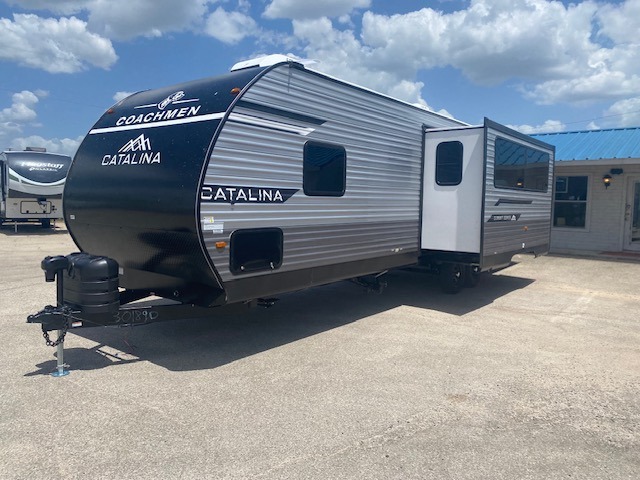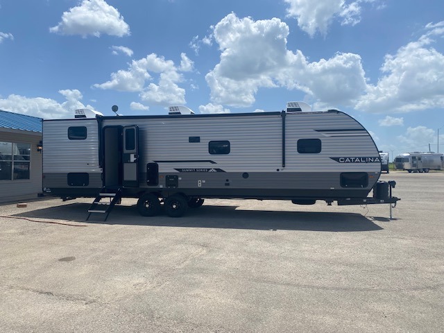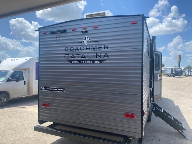 With any Catalina Summit Series 8 by Coachmen you will enjoy an affordable travel trailer packed with at-home comforts! The solid construction includes a Norco electromagnetic powder coated chassis, a seamless Alpha roof membrane, and full length frame outriggers for maximum support and durability. EZ lube axles with leaf spring suspension and self adjusting brakes provide smooth towing from home to campground, and the premium exterior graphics package is sure to turn heads as you travel down the highway. You will love the features included, such as a JBL Aura Cube media center, magnetic baggage door latches, 4,000 lumen interior touch lighting, and the list goes on!
