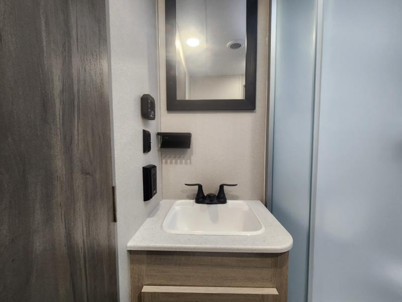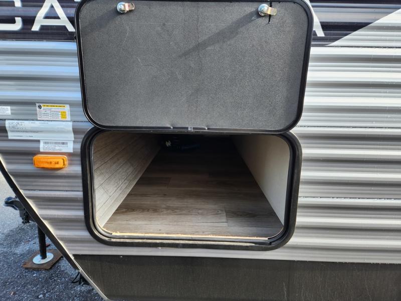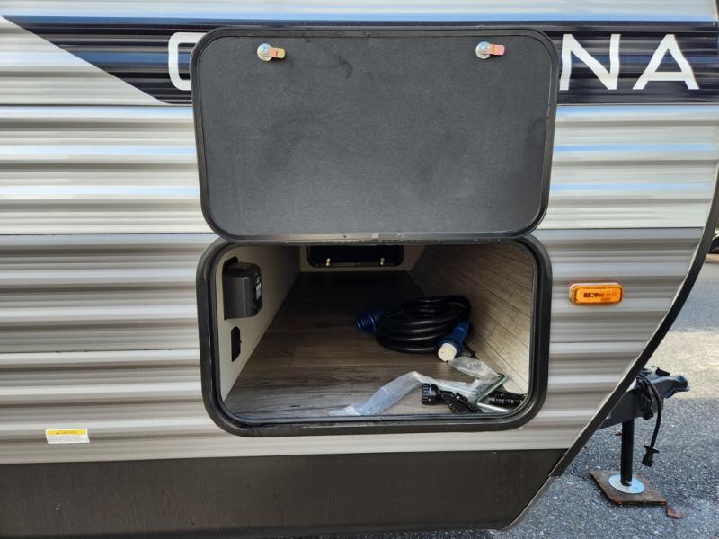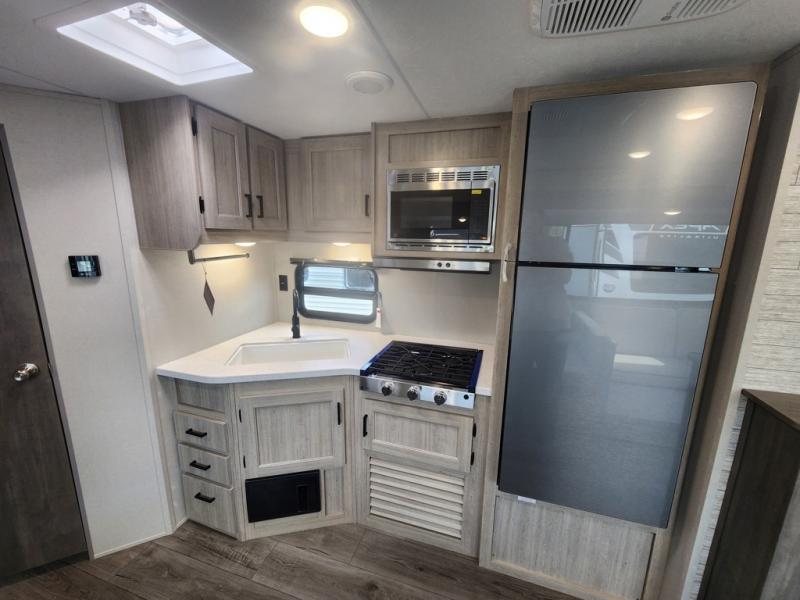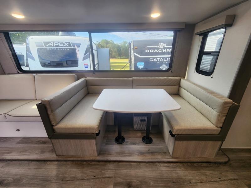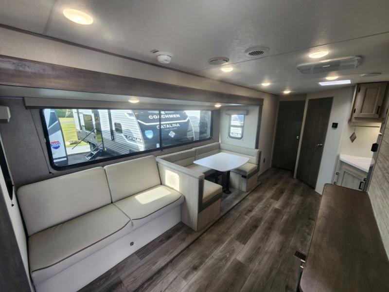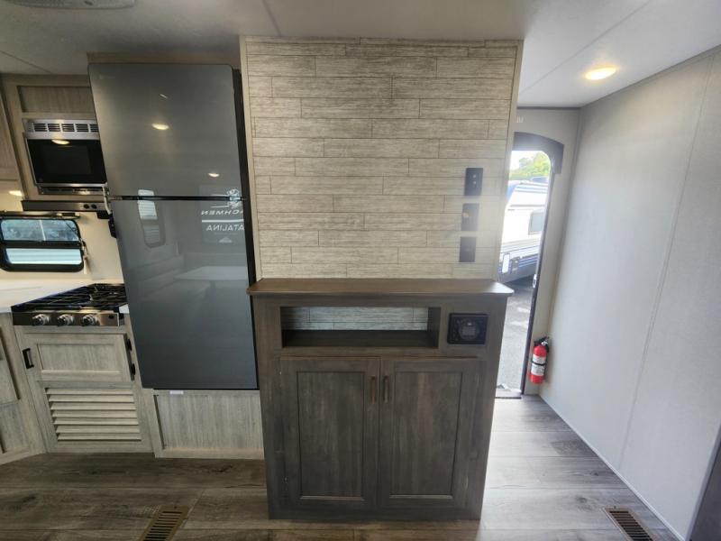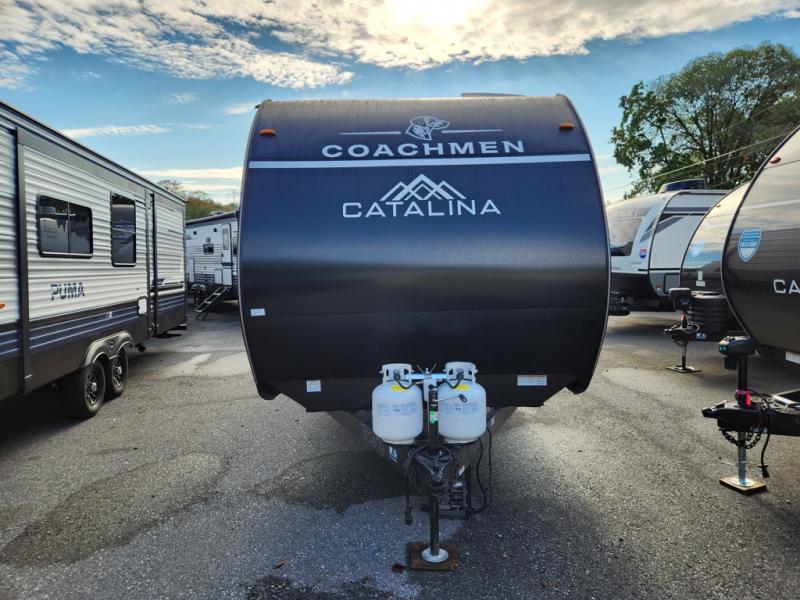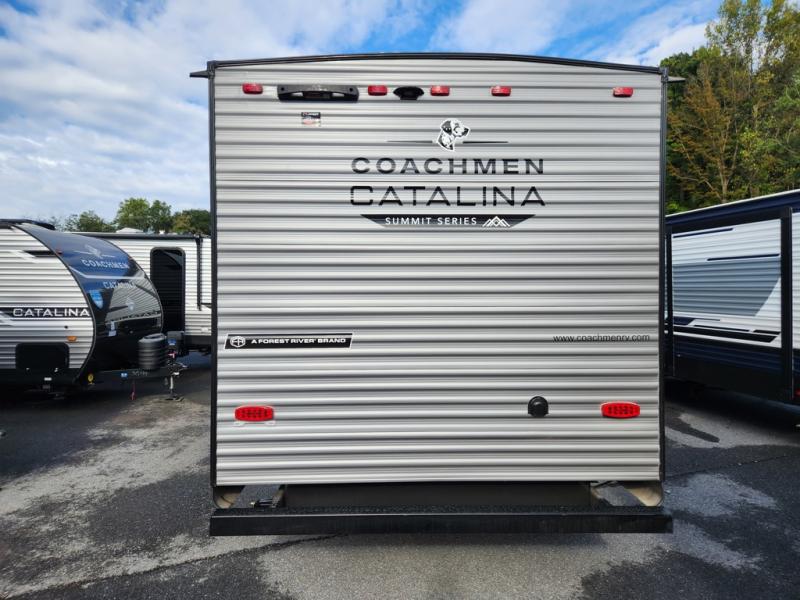 With any Catalina Summit Series 8 by Coachmen you will enjoy an affordable travel trailer packed with at-home comforts! The solid construction includes a Norco electromagnetic powder coated chassis, a seamless Alpha roof membrane, and full length frame outriggers for maximum support and durability. EZ lube axles with leaf spring suspension and self adjusting brakes provide smooth towing from home to campground, and the premium exterior graphics package is sure to turn heads as you travel down the highway. You will love the features included, such as a JBL Aura Cube media center, magnetic baggage door latches, 4,000 lumen interior touch lighting, and the list goes on!