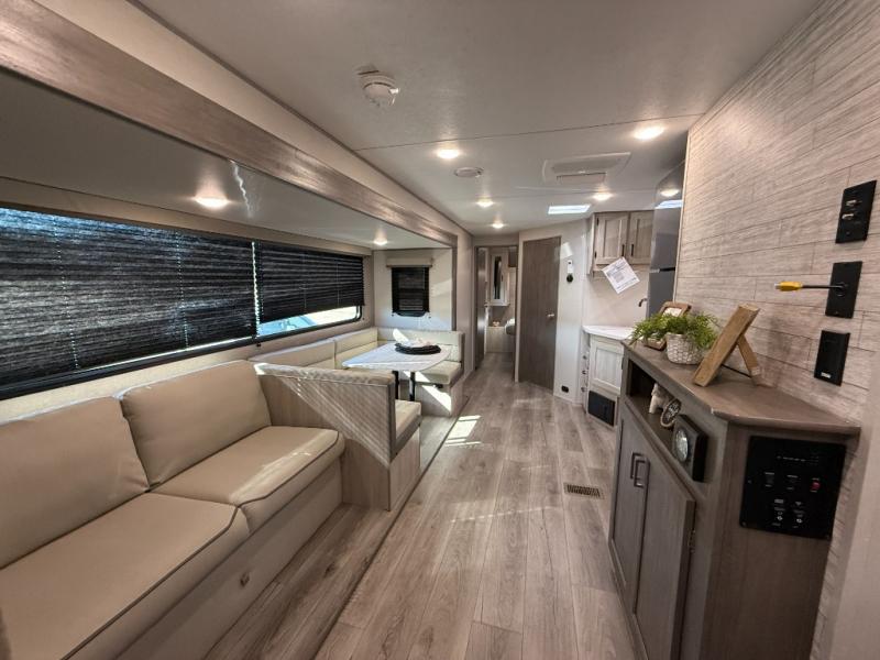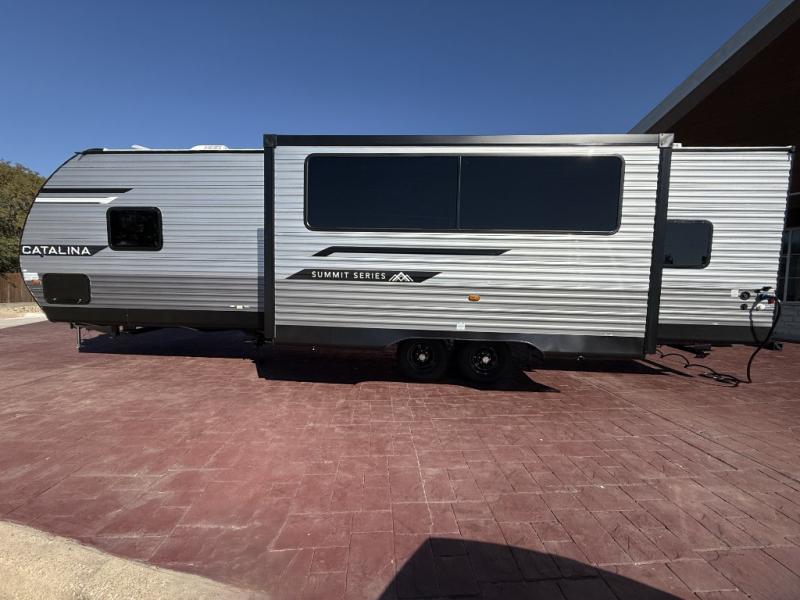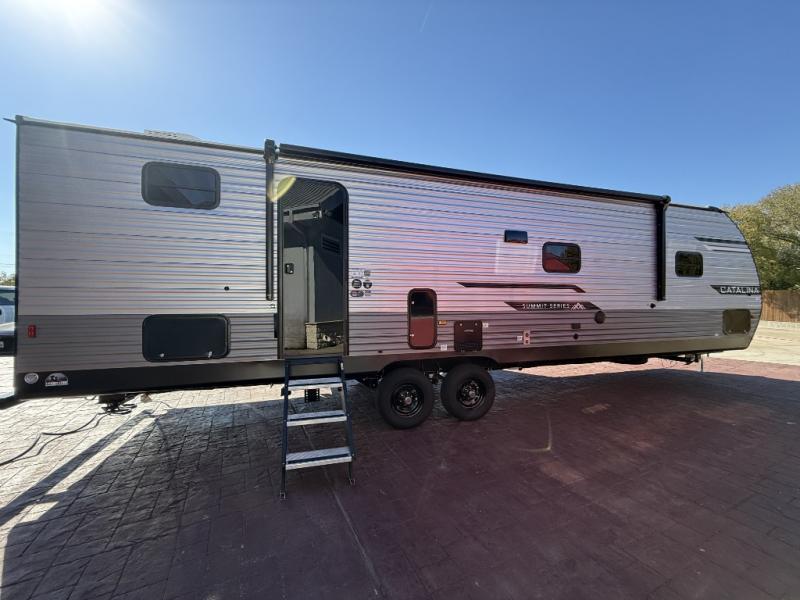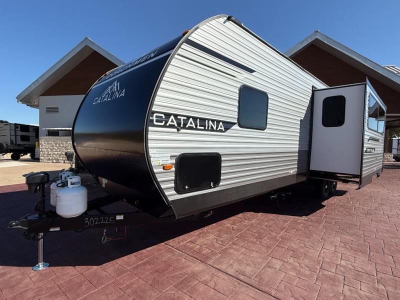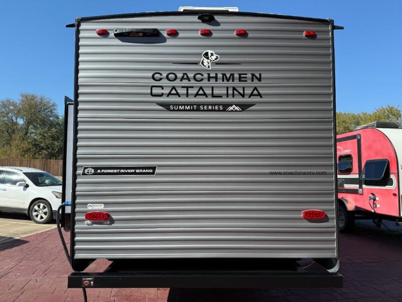With any Catalina Summit Series 8 by Coachmen you will enjoy an affordable travel trailer packed with at-home comforts! The solid construction includes a Norco electromagnetic powder coated chassis, a seamless Alpha roof membrane, and full length frame outriggers for maximum support and durability. EZ lube axles with leaf spring suspension and self adjusting brakes provide smooth towing from home to campground, and the premium exterior graphics package is sure to turn heads as you travel down the highway. You will love the features included, such as a JBL Aura Cube media center, magnetic baggage door latches, 4,000 lumen interior touch lighting, and the list goes on!