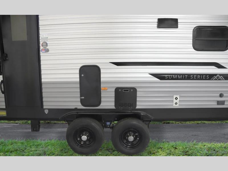 With any Catalina Summit Series 8 by Coachmen you will enjoy an affordable travel trailer packed with at-home comforts! The solid construction includes a Norco electromagnetic powder coated chassis, a seamless Alpha roof membrane, and full length frame outriggers for maximum support and durability. EZ lube axles with leaf spring suspension and self adjusting brakes provide smooth towing from home to campground, and the premium exterior graphics package is sure to turn heads as you travel down the highway. You will love the features included, such as a JBL Aura Cube media center, magnetic baggage door latches, 4,000 lumen interior touch lighting, and the list goes on!