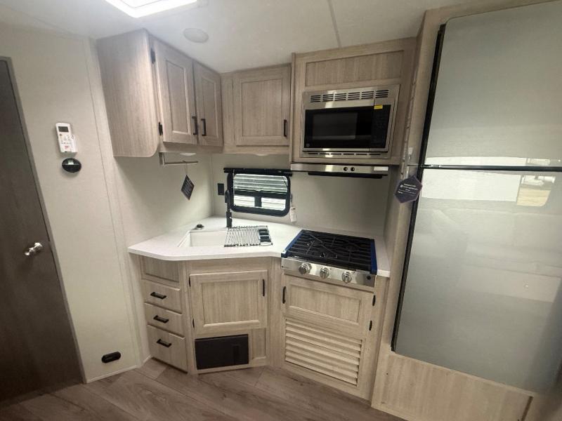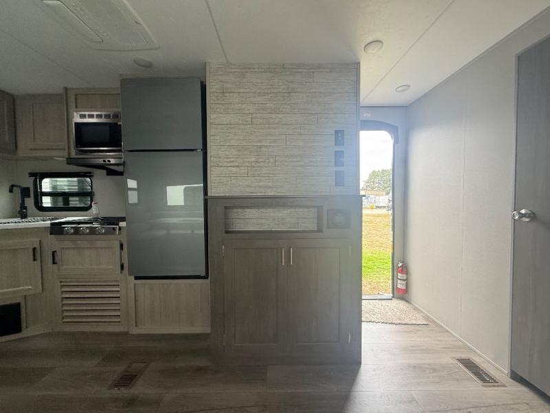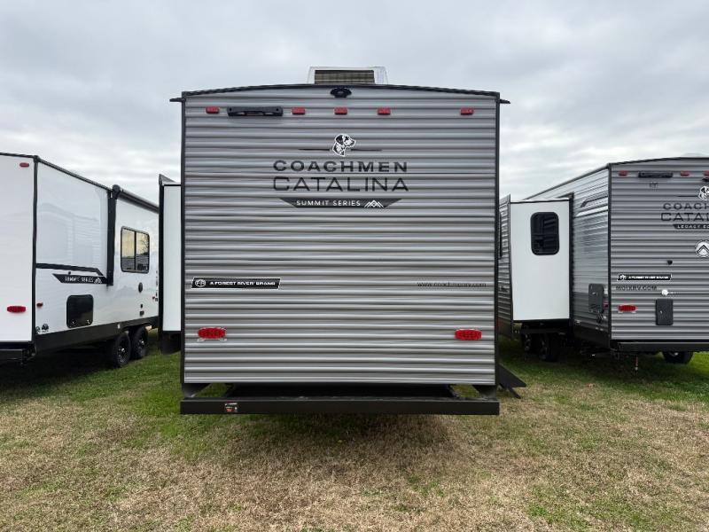 With any Catalina Summit Series 8 by Coachmen you will enjoy an affordable travel trailer packed with at-home comforts! The solid construction includes a Norco electromagnetic powder coated chassis, a seamless Alpha roof membrane, and full length frame outriggers for maximum support and durability. EZ lube axles with leaf spring suspension and self adjusting brakes provide smooth towing from home to campground, and the premium exterior graphics package is sure to turn heads as you travel down the highway. You will love the features included, such as a JBL Aura Cube media center, magnetic baggage door latches, 4,000 lumen interior touch lighting, and the list goes on!