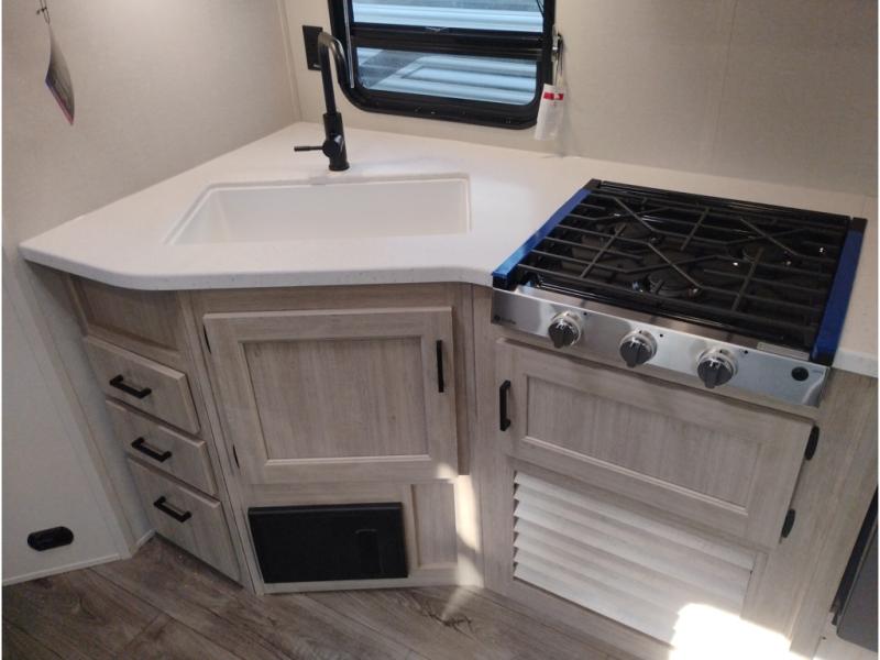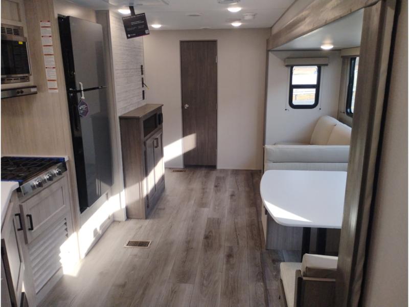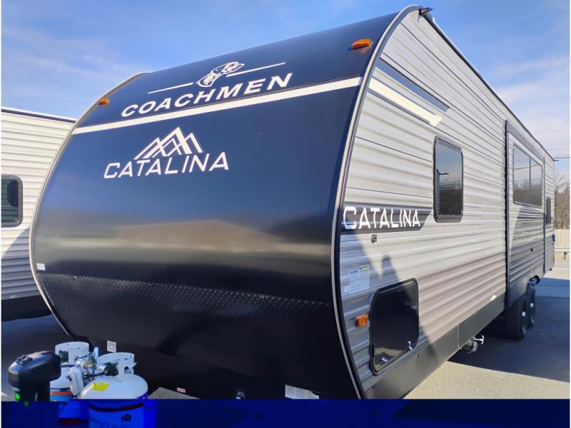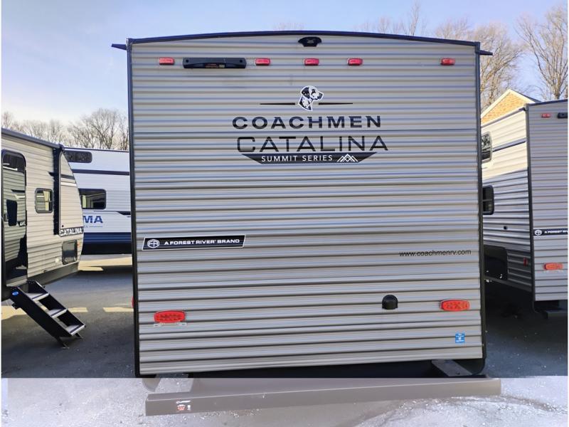 With any Catalina Summit Series 8 by Coachmen you will enjoy an affordable travel trailer packed with at-home comforts! The solid construction includes a Norco electromagnetic powder coated chassis, a seamless Alpha roof membrane, and full length frame outriggers for maximum support and durability. EZ lube axles with leaf spring suspension and self adjusting brakes provide smooth towing from home to campground, and the premium exterior graphics package is sure to turn heads as you travel down the highway. You will love the features included, such as a JBL Aura Cube media center, magnetic baggage door latches, 4,000 lumen interior touch lighting, and the list goes on!