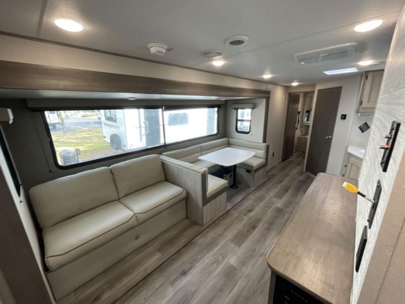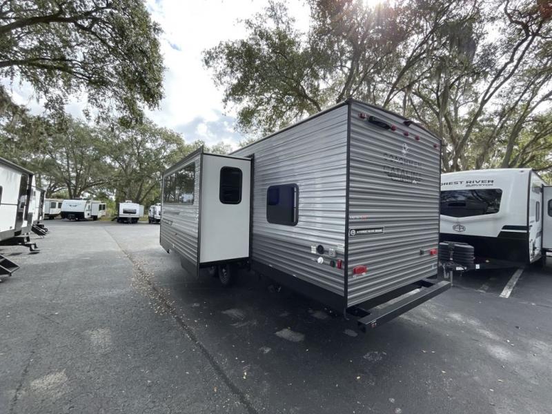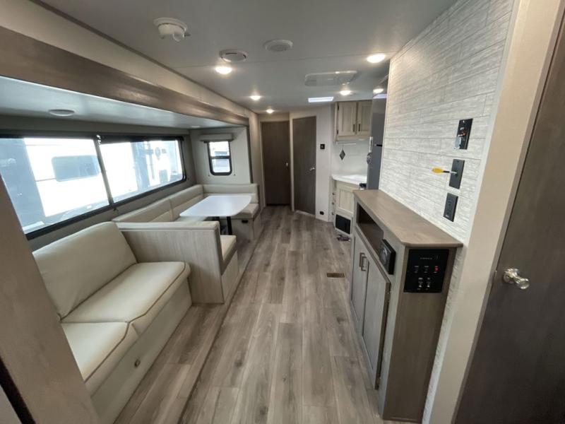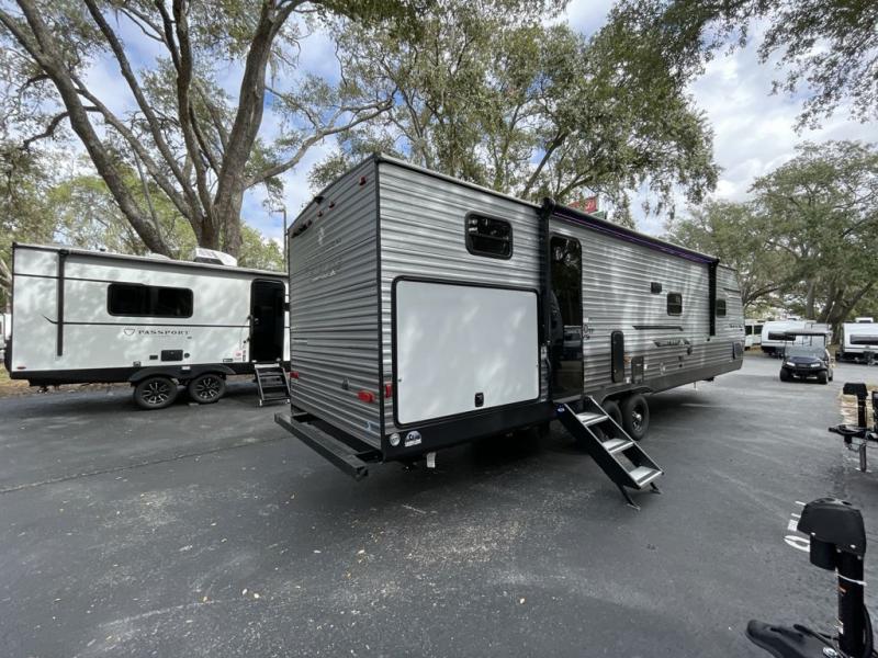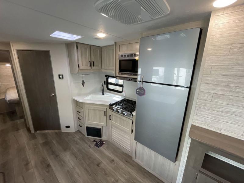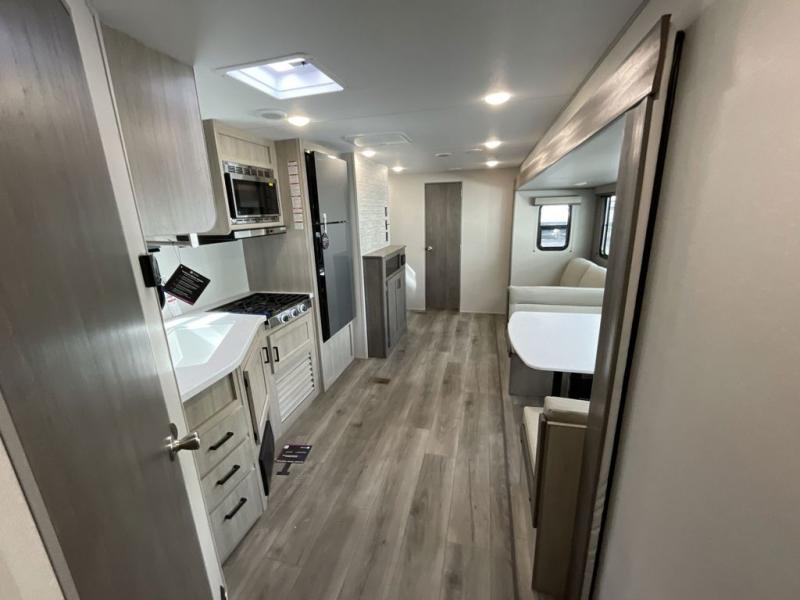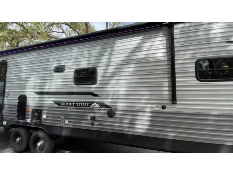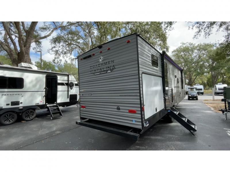 With any Catalina Summit Series 8 by Coachmen you will enjoy an affordable travel trailer packed with at-home comforts! The solid construction includes a Norco electromagnetic powder coated chassis, a seamless Alpha roof membrane, and full length frame outriggers for maximum support and durability. EZ lube axles with leaf spring suspension and self adjusting brakes provide smooth towing from home to campground, and the premium exterior graphics package is sure to turn heads as you travel down the highway. You will love the features included, such as a JBL Aura Cube media center, magnetic baggage door latches, 4,000 lumen interior touch lighting, and the list goes on!