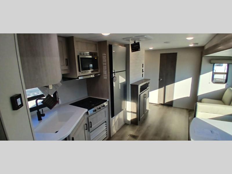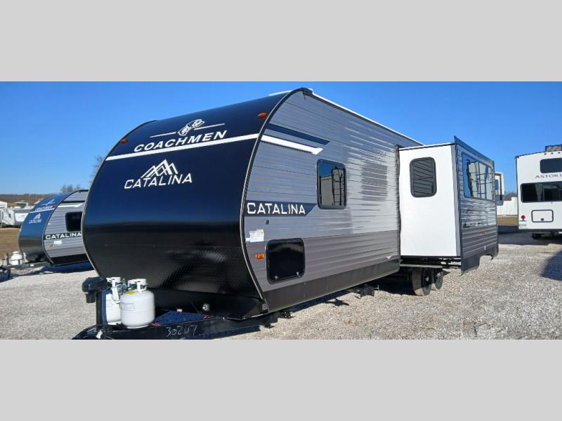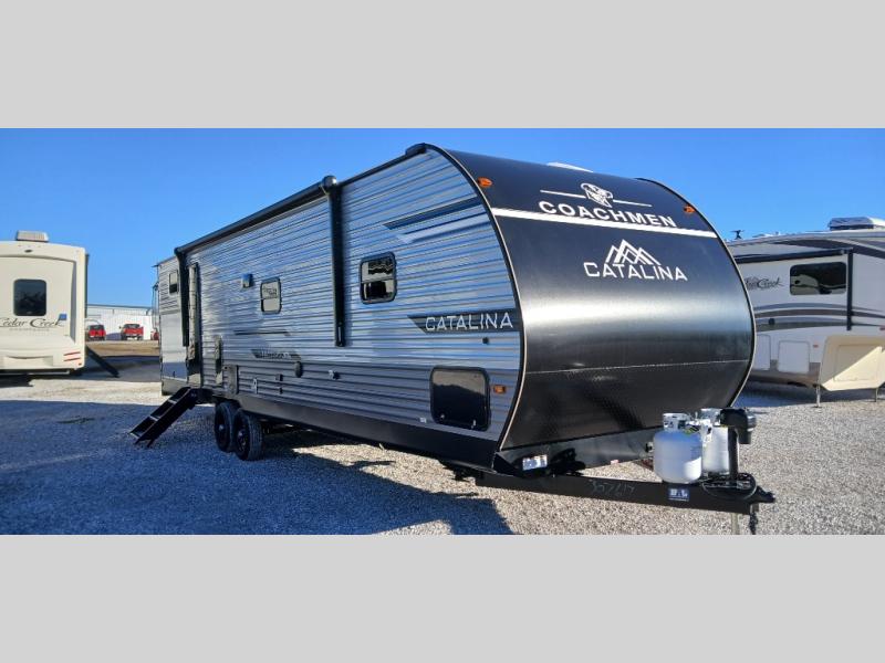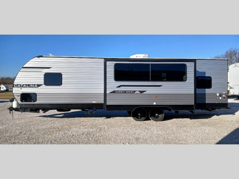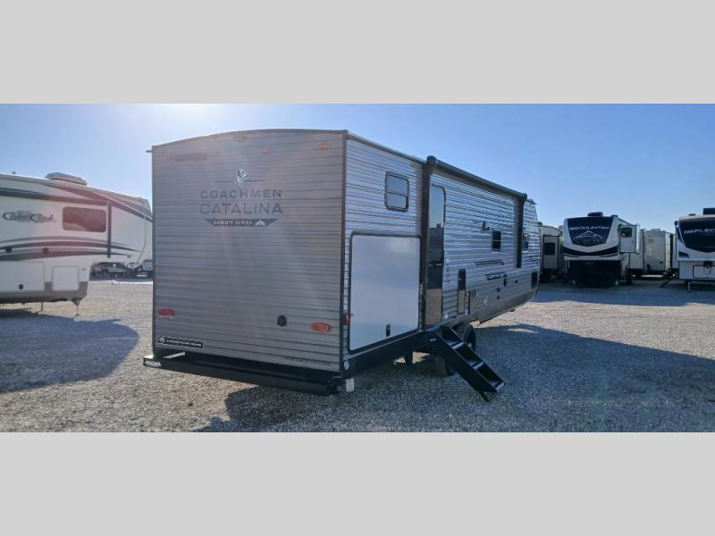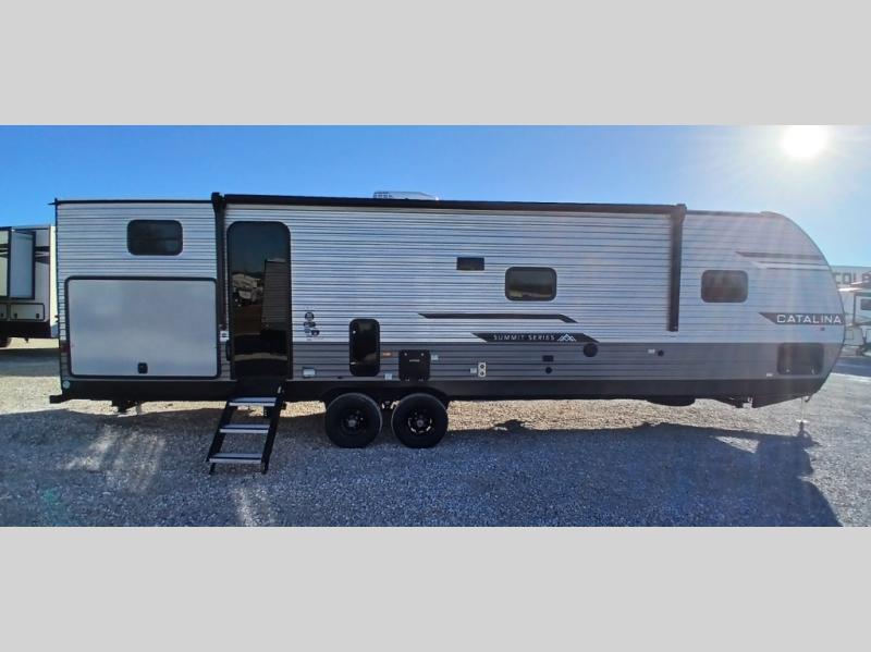 With any Catalina Summit Series 8 by Coachmen you will enjoy an affordable travel trailer packed with at-home comforts! The solid construction includes a Norco electromagnetic powder coated chassis, a seamless Alpha roof membrane, and full length frame outriggers for maximum support and durability. EZ lube axles with leaf spring suspension and self adjusting brakes provide smooth towing from home to campground, and the premium exterior graphics package is sure to turn heads as you travel down the highway. You will love the features included, such as a JBL Aura Cube media center, magnetic baggage door latches, 4,000 lumen interior touch lighting, and the list goes on!