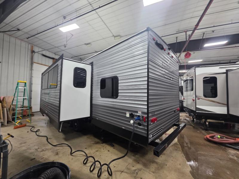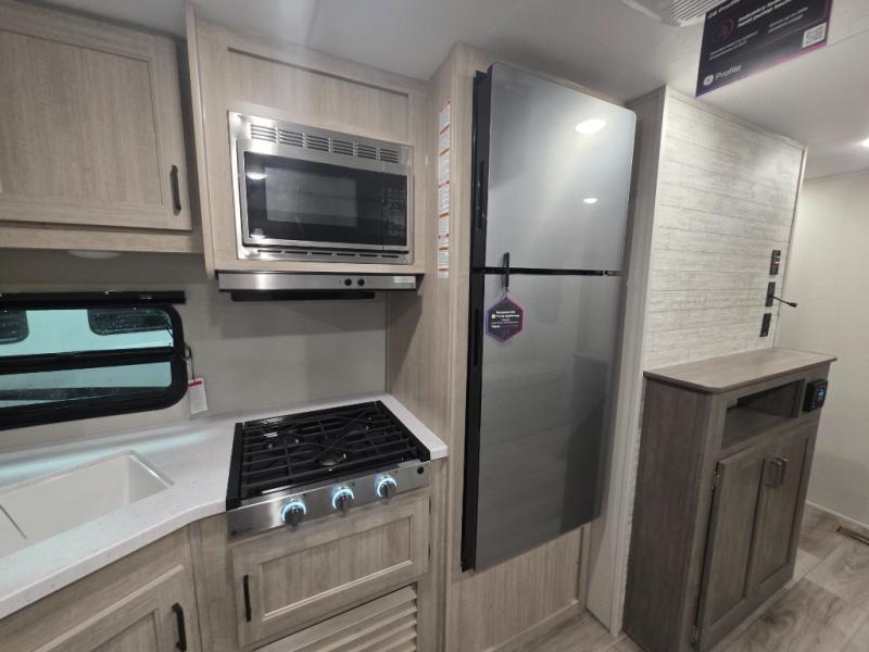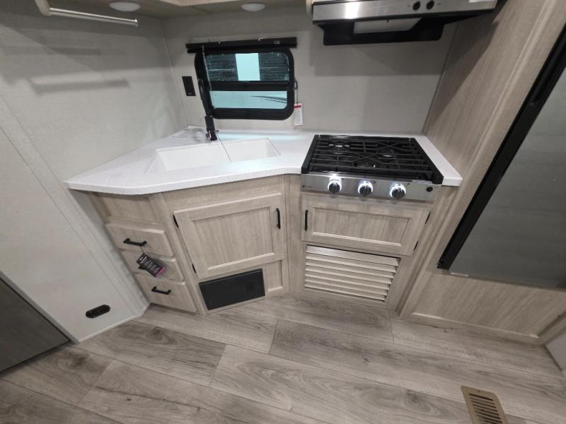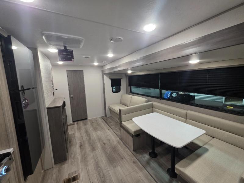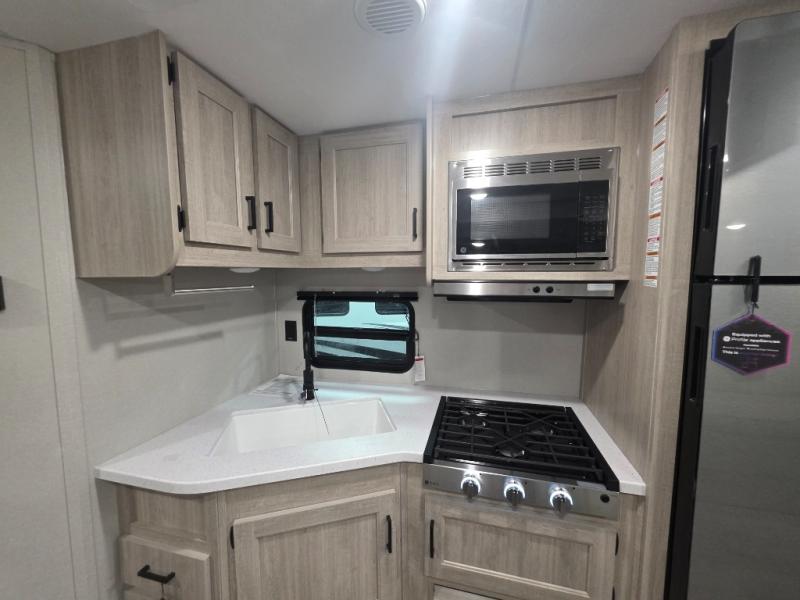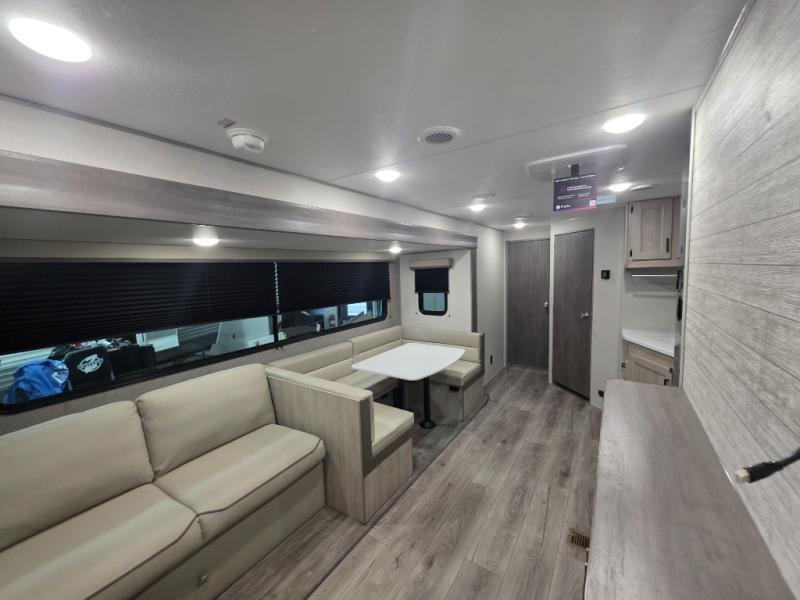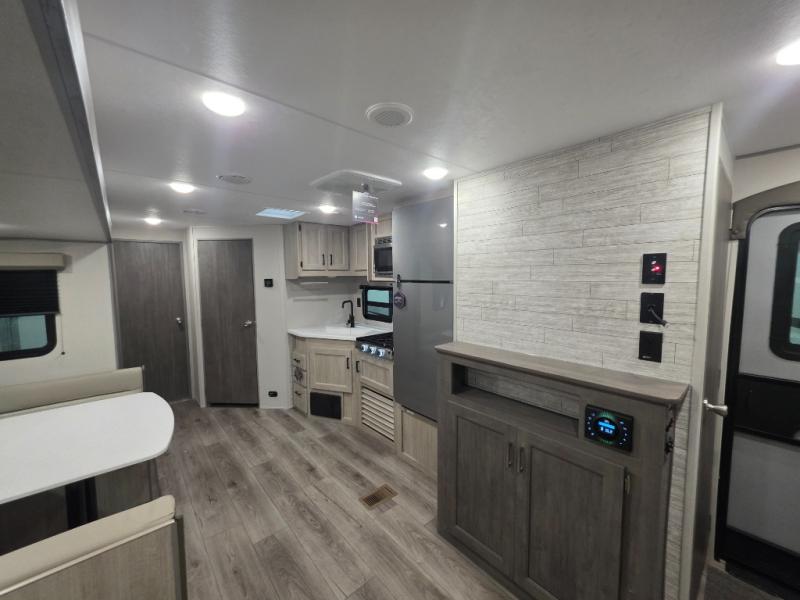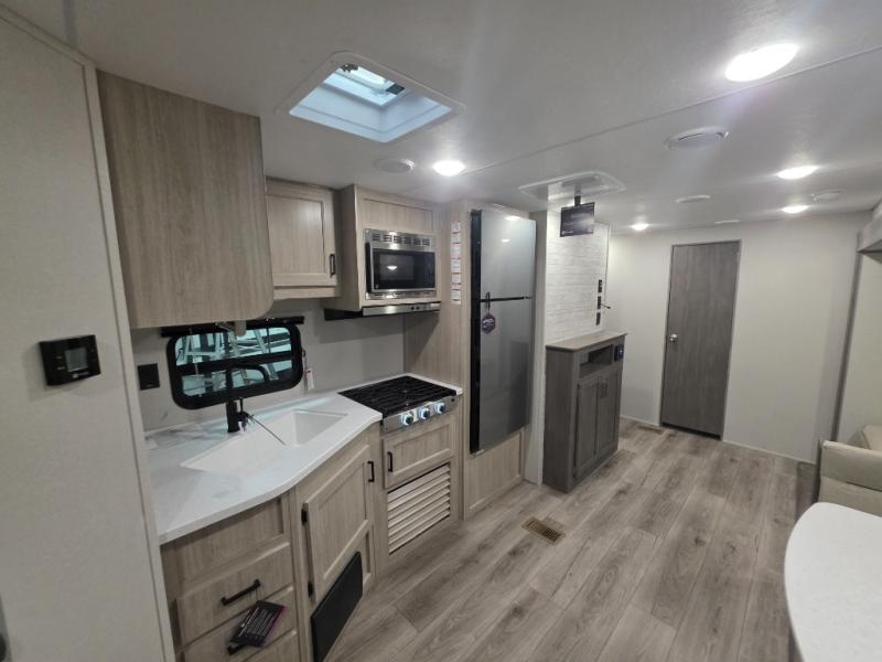With any Catalina Summit Series 8 by Coachmen you will enjoy an affordable travel trailer packed with at-home comforts! The solid construction includes a Norco electromagnetic powder coated chassis, a seamless Alpha roof membrane, and full length frame outriggers for maximum support and durability. EZ lube axles with leaf spring suspension and self adjusting brakes provide smooth towing from home to campground, and the premium exterior graphics package is sure to turn heads as you travel down the highway. You will love the features included, such as a JBL Aura Cube media center, magnetic baggage door latches, 4,000 lumen interior touch lighting, and the list goes on!