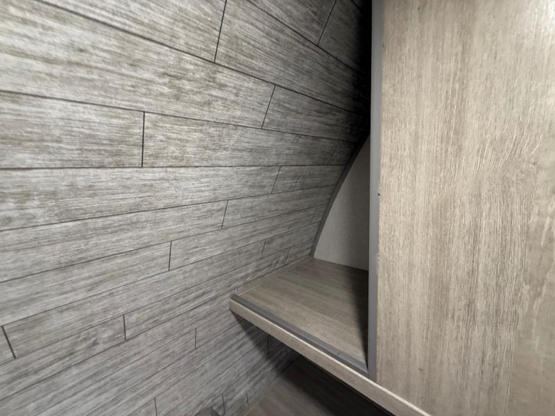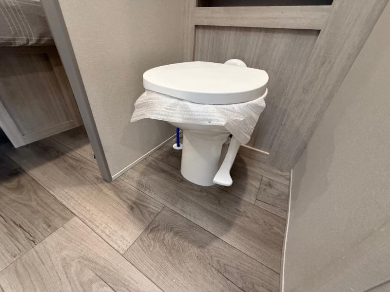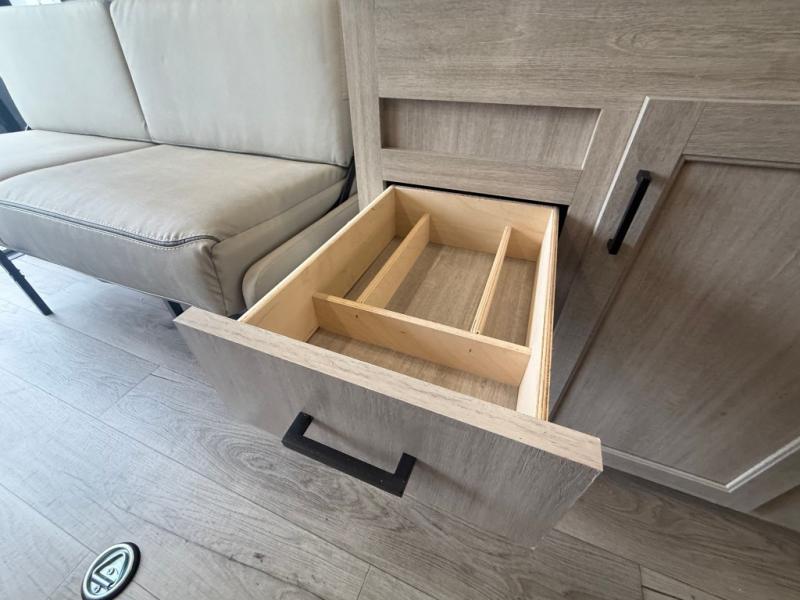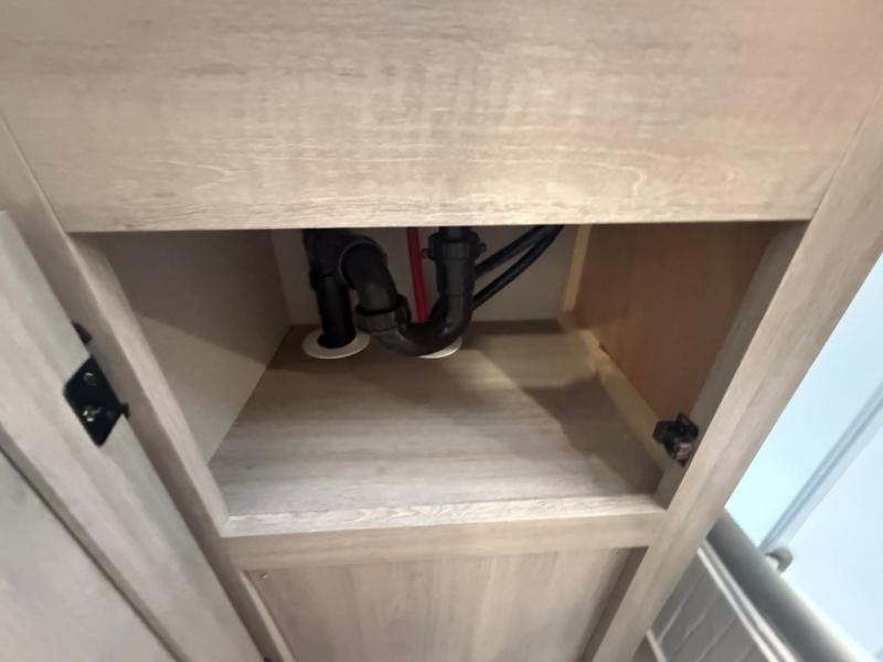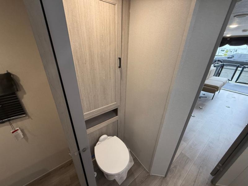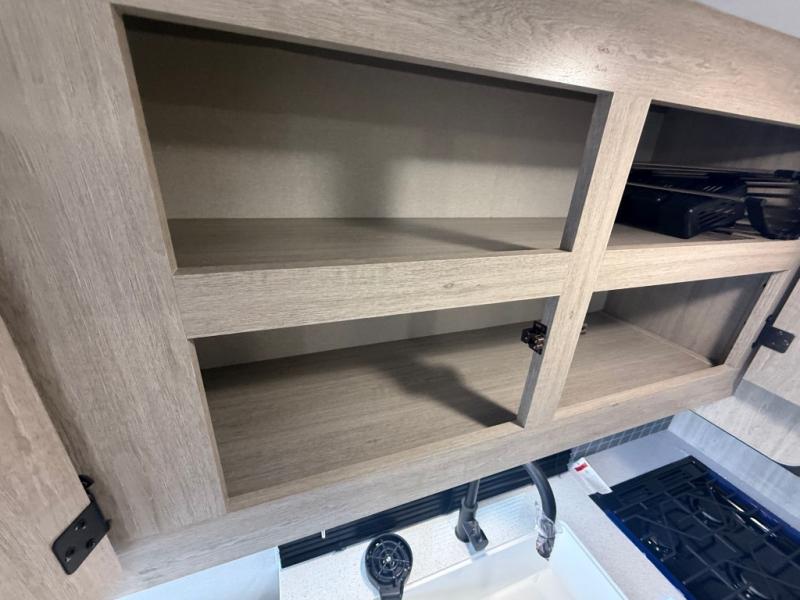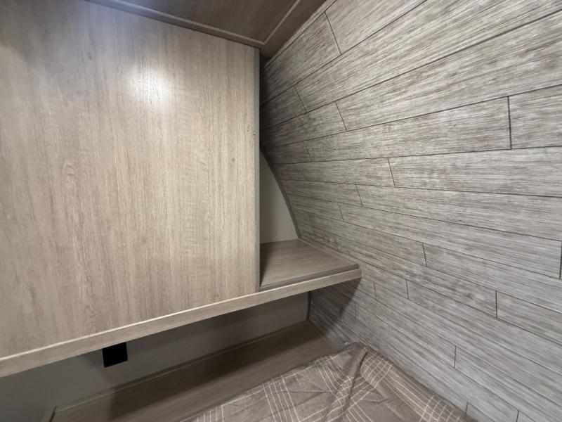 There are many reasons that you will want to own this Catalina Trail Blazer toy hauler, but one of those reasons is the great walk-through bathroom! Since there are entry doors on either side of this bathroom, you can access it from the main living area as well as from the front private bedroom. There is also a little bit of extra space in the bathroom since it spans the width of the trailer, and the shower skylight keeps this area bright. You'll definitely be spending most of your time out on the trails riding your bikes or out on the lake paddling your kayaks, but when you do come back inside this trailer, you will be met with two fold-down sofas, and you might want to add the optional recliners. There is also an optional party deck available if you want to extend your living space!