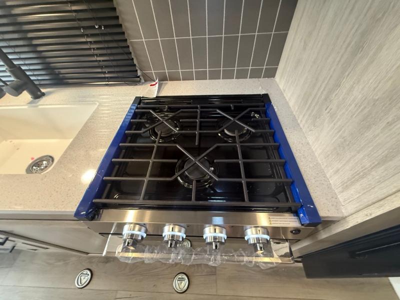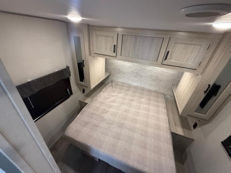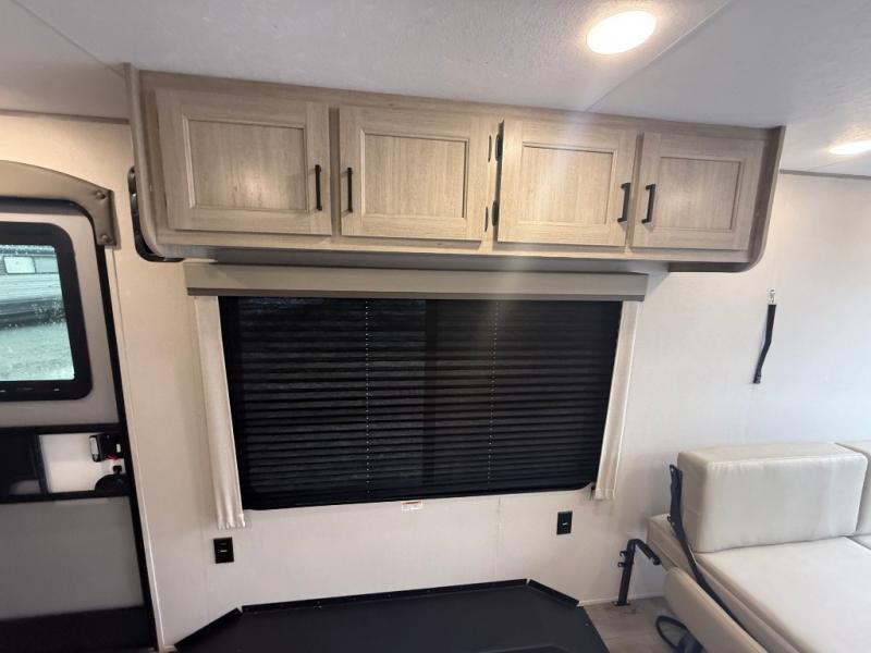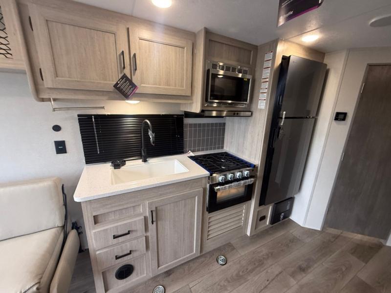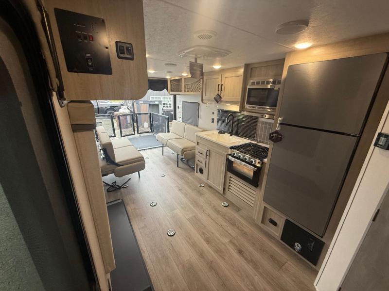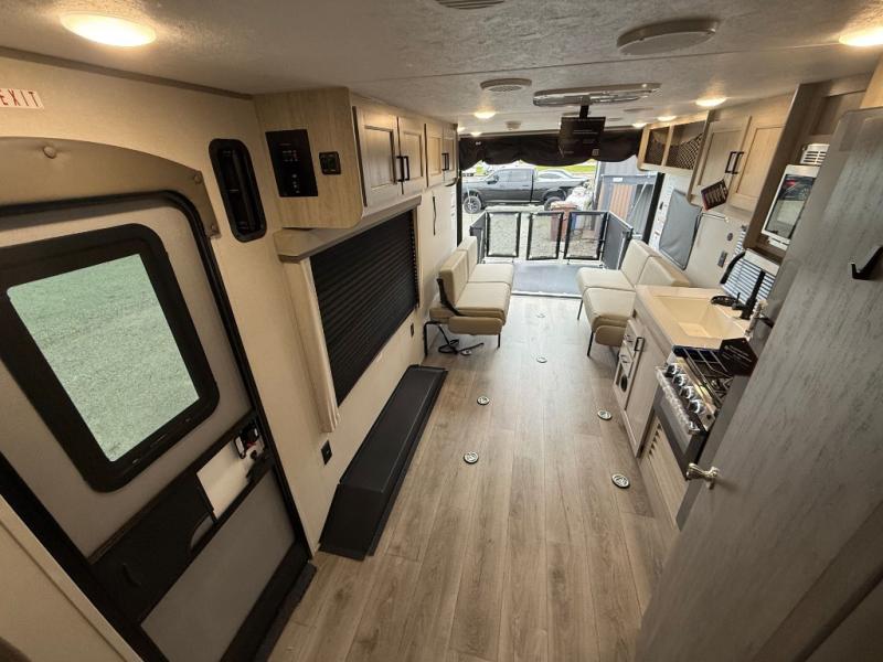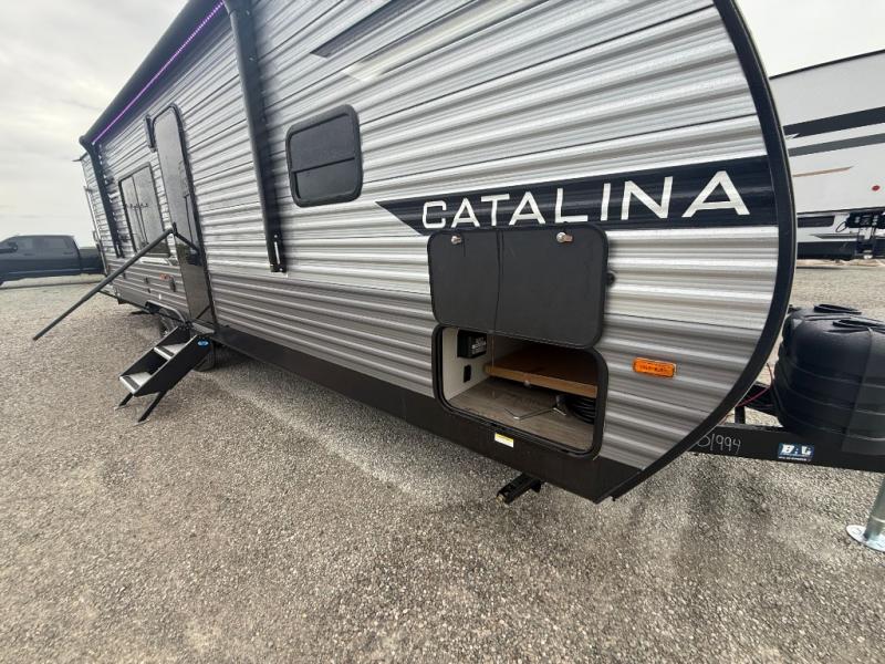 The best looking, most affordable toy hauler is found in the Catalina Trailer Blazer by Coachmen. Each one is constructed with a seamless alpha roof membrane, an enclosed and fully sealed underbelly, and a cambered structural steel I-beam frame for added support. There is a rear loading cargo door with a 3,000 lb. capacity, a black out screen wall with a zip walk-thru and windows, plus 500 lb. tie-downs to secure your toys. You'll love the interior with its Congoleum woodplank linoleum flooring and LED interior lighting. Head outside to find an electric awning with multicolored LED lights and a remote, a 15' Toy Loc cable, a "Leash Link" quick hookup D-ring for pets, and upgraded aluminum wheels. The Catalina Trail Blazer also comes with a JBL Aura Cube media center, plus premium JBL interior speakers for your pleasure!