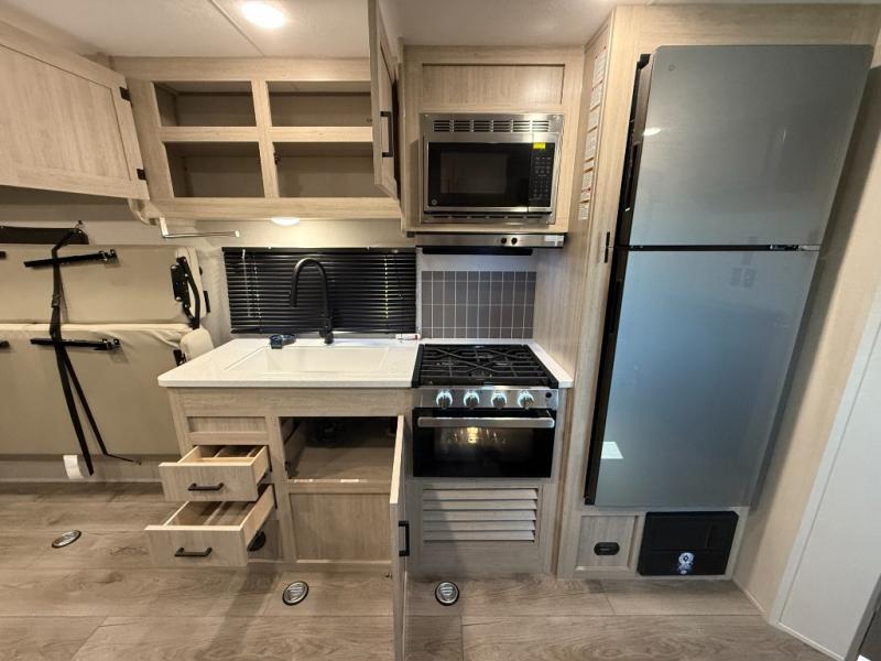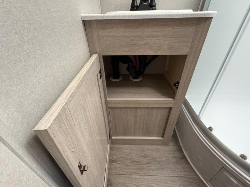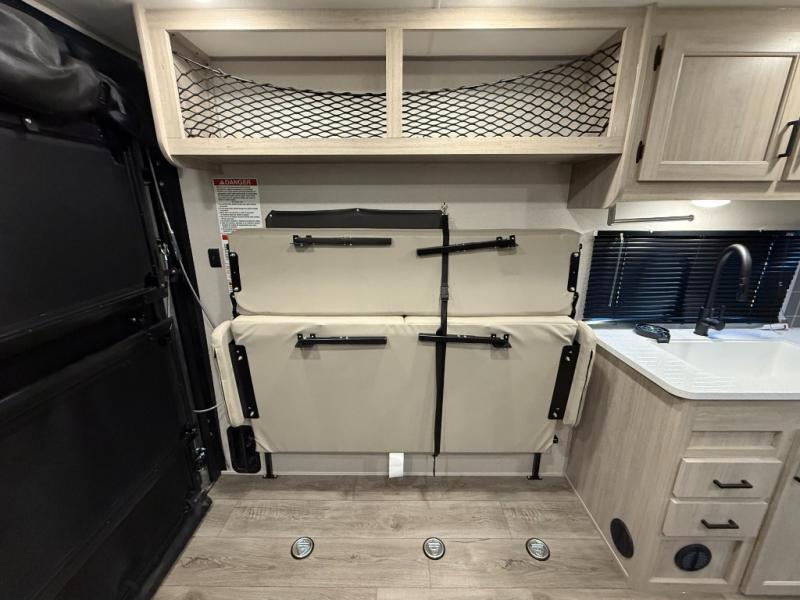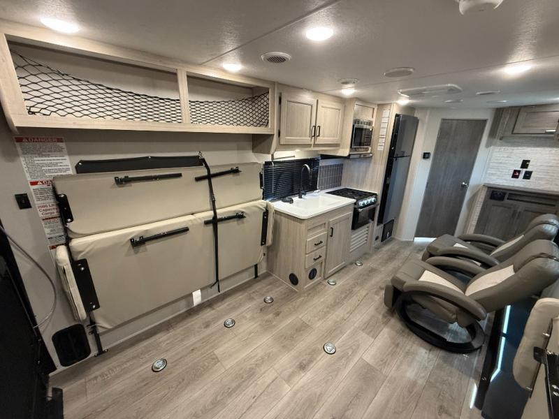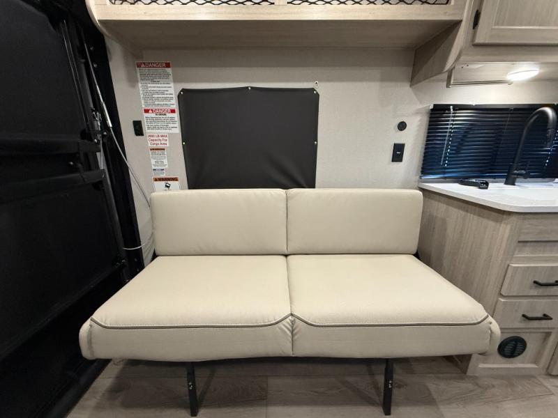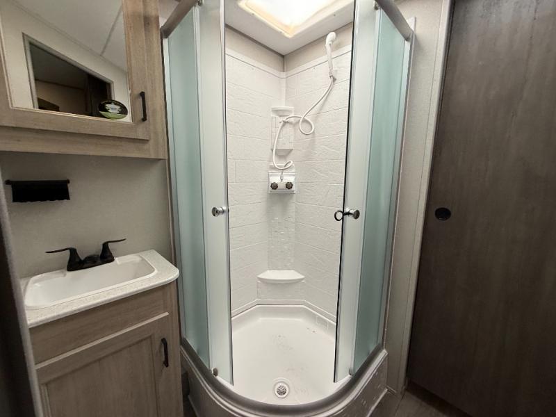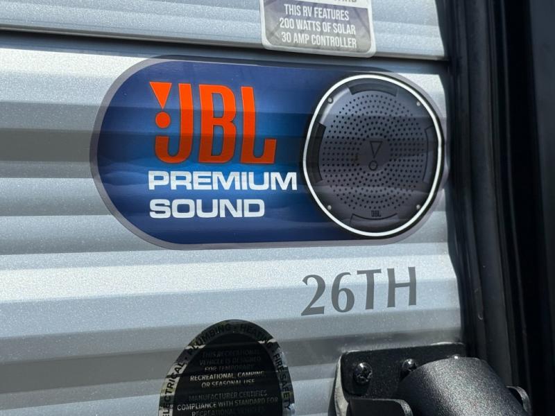 Other Specs: Furnace 30,000 BTU; AC 13,500 BTU; dual LP tanks (20 lbs each); 30 amp electrical service; 15-ft electric awning with multicolor LED lighting