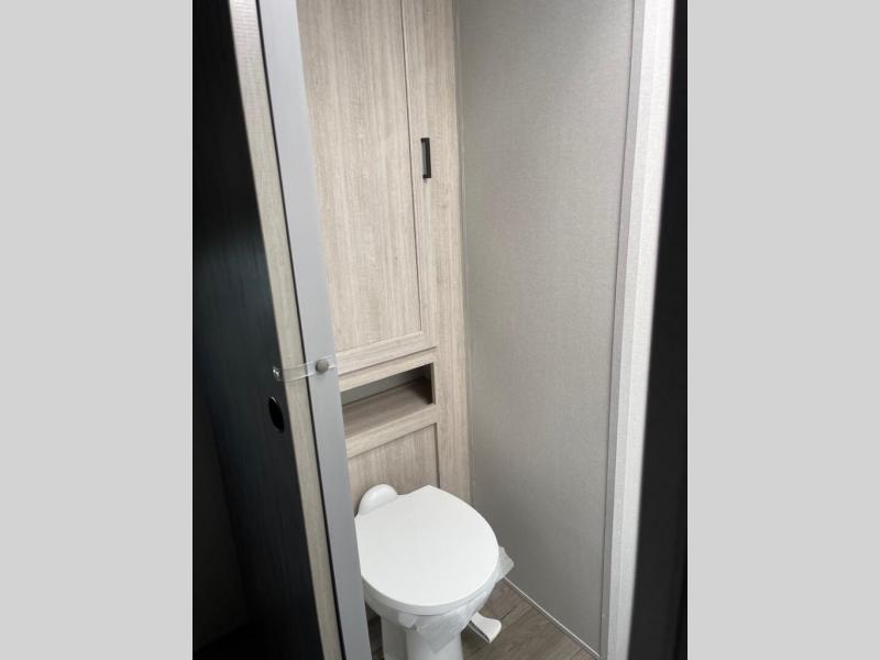 There are many reasons that you will want to own this Catalina Trail Blazer toy hauler, but one of those reasons is the great walk-through bathroom! Since there are entry doors on either side of this bathroom, you can access it from the main living area as well as from the front private bedroom. There is also a little bit of extra space in the bathroom since it spans the width of the trailer, and the shower skylight keeps this area bright. You'll definitely be spending most of your time out on the trails riding your bikes or out on the lake paddling your kayaks, but when you do come back inside this trailer, you will be met with two fold-down sofas, and you might want to add the optional recliners. There is also an optional party deck available if you want to extend your living space!