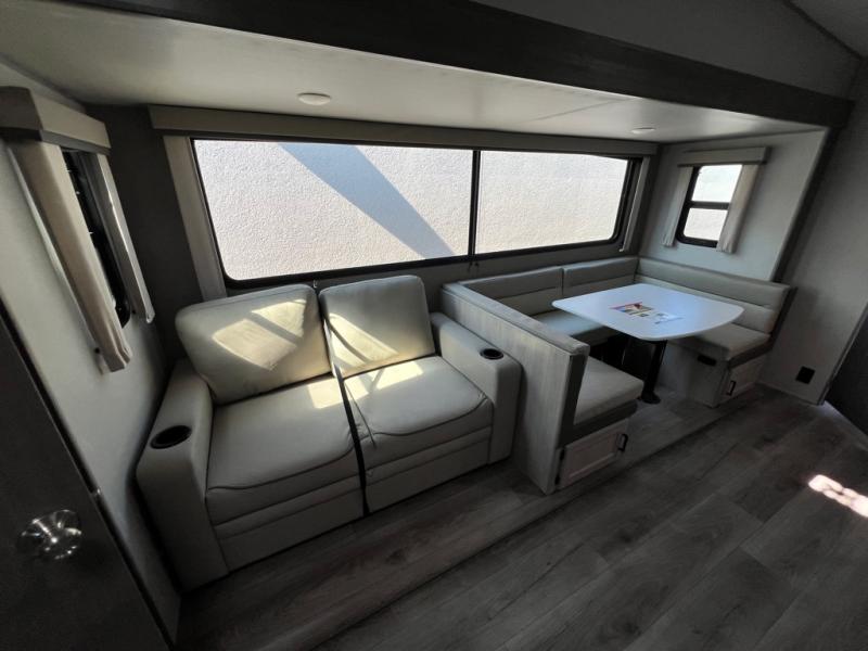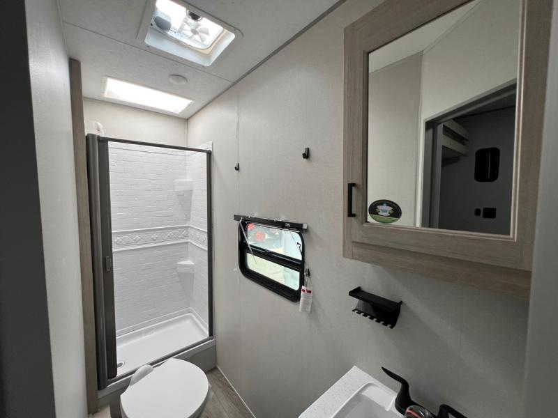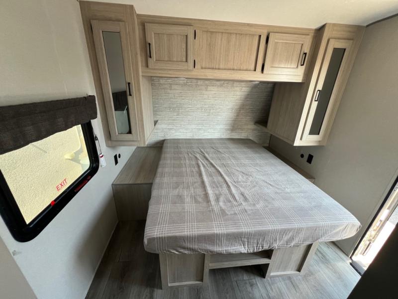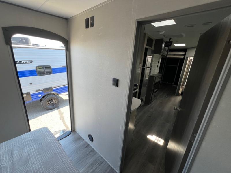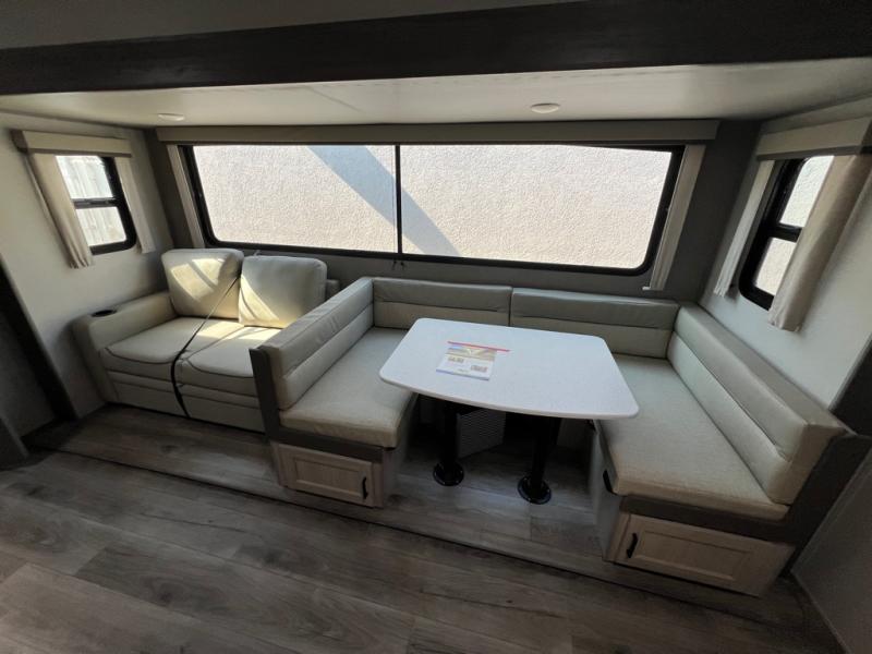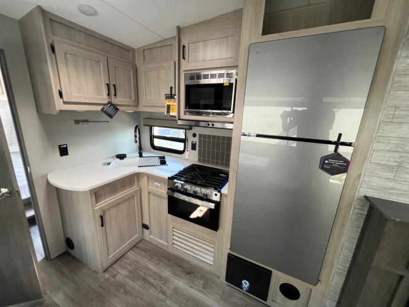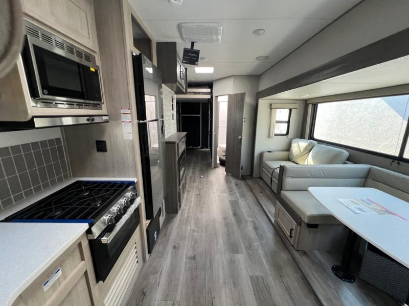 The best looking, most affordable toy hauler is found in the Catalina Trailer Blazer by Coachmen. Each one is constructed with a seamless alpha roof membrane, an enclosed and fully sealed underbelly, and a cambered structural steel I-beam frame for added support. There is a rear loading cargo door with a 3,000 lb. capacity, a black out screen wall with a zip walk-thru and windows, plus 500 lb. tie-downs to secure your toys. You'll love the interior with its Congoleum woodplank linoleum flooring and LED interior lighting. Head outside to find an electric awning with multicolored LED lights and a remote, a 15' Toy Loc cable, a "Leash Link" quick hookup D-ring for pets, and upgraded aluminum wheels. The Catalina Trail Blazer also comes with RV-LINK 4G LTE connectivity with a WiFi booster and extender, a JBL Aura Cube media center, plus premium JBL interior speakers for your pleasure!