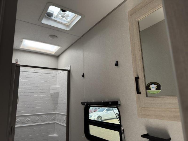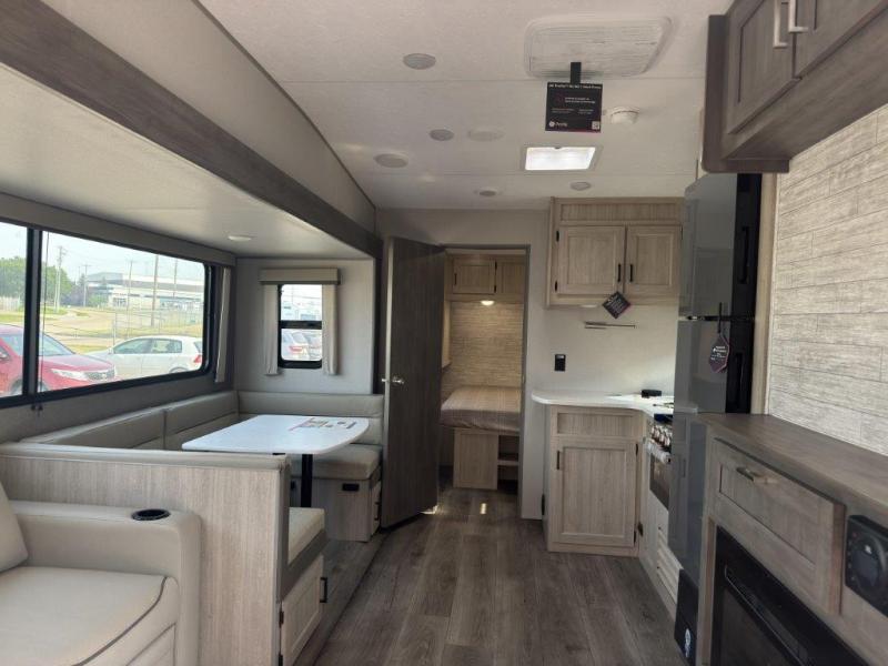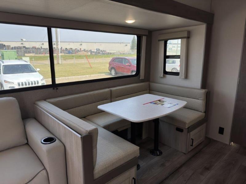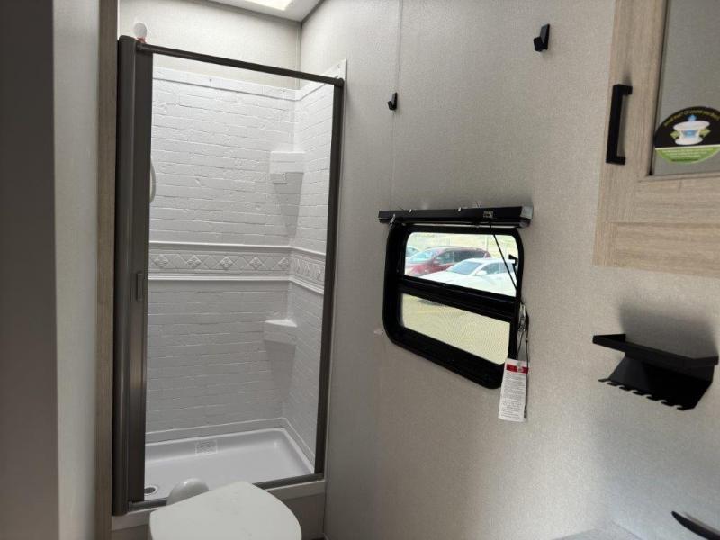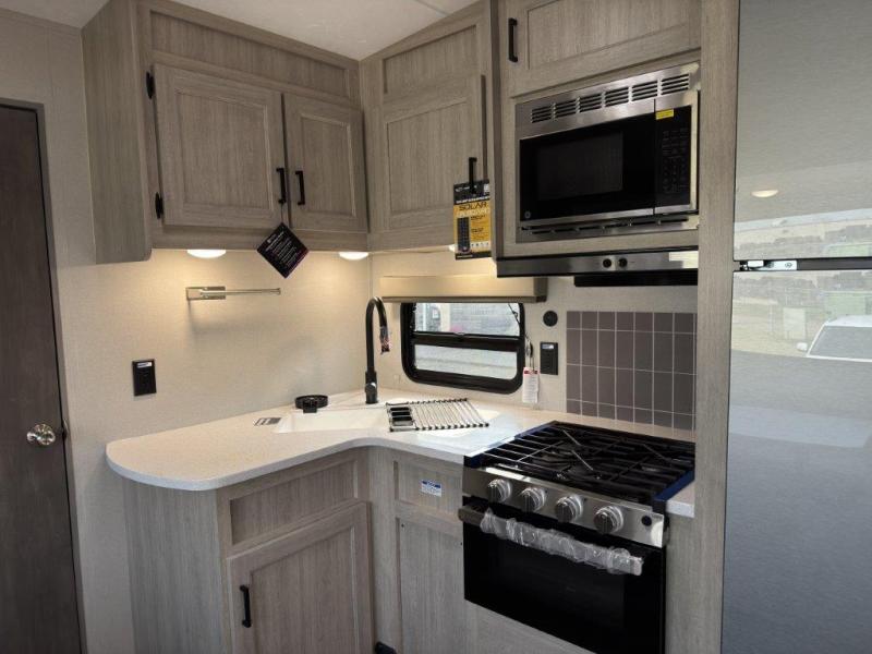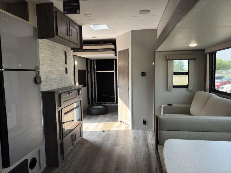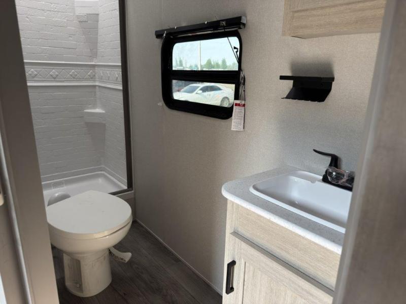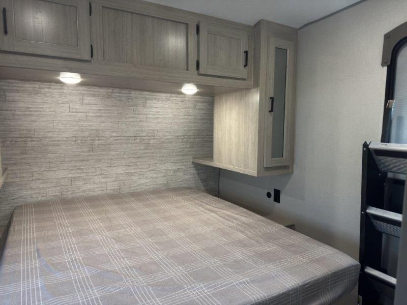 The best looking, most affordable toy hauler is found in the Catalina Trailer Blazer by Coachmen. Each one is constructed with a seamless alpha roof membrane, an enclosed and fully sealed underbelly, and a cambered structural steel I-beam frame for added support. There is a rear loading cargo door with a 3,000 lb. capacity, a black out screen wall with a zip walk-thru and windows, plus 500 lb. tie-downs to secure your toys. You'll love the interior with its Congoleum woodplank linoleum flooring and LED interior lighting. Head outside to find an electric awning with multicolored LED lights and a remote, a 15' Toy Loc cable, a "Leash Link" quick hookup D-ring for pets, and upgraded aluminum wheels. The Catalina Trail Blazer also comes with RV-LINK 4G LTE connectivity with a WiFi booster and extender, a JBL Aura Cube media center, plus premium JBL interior speakers for your pleasure!