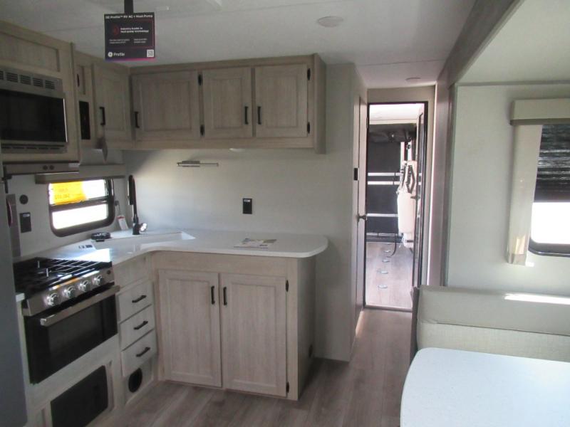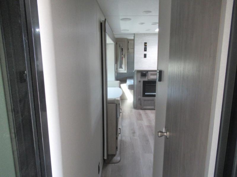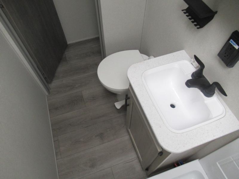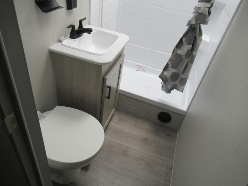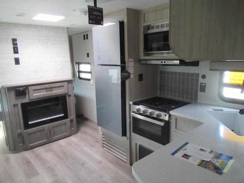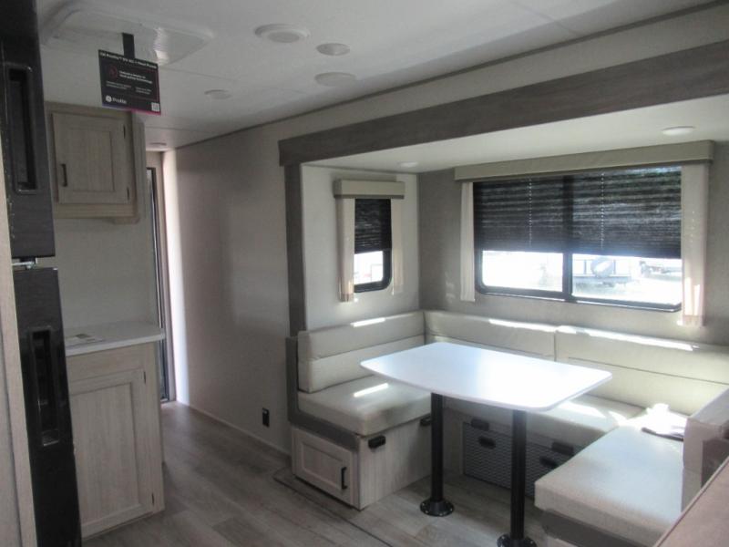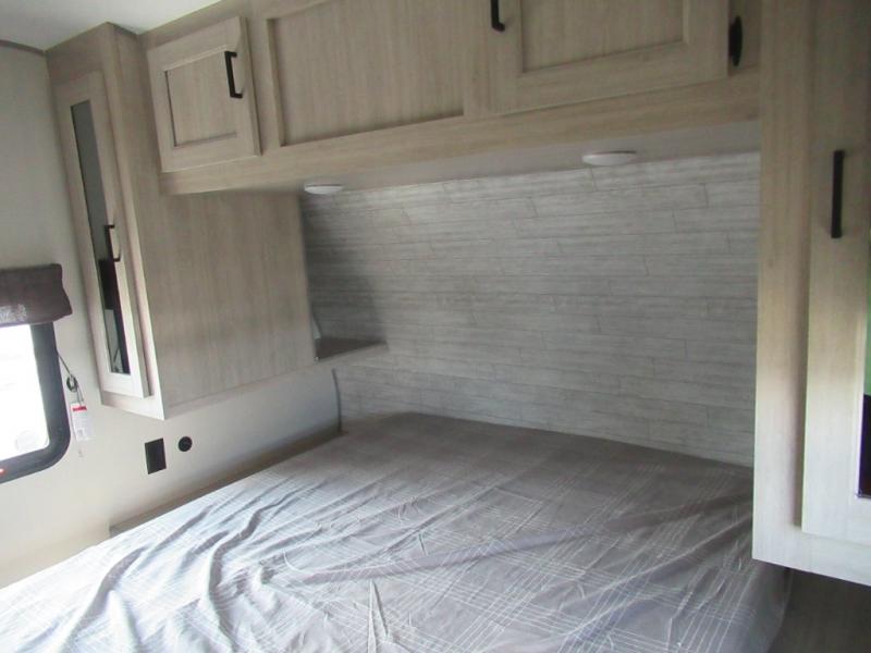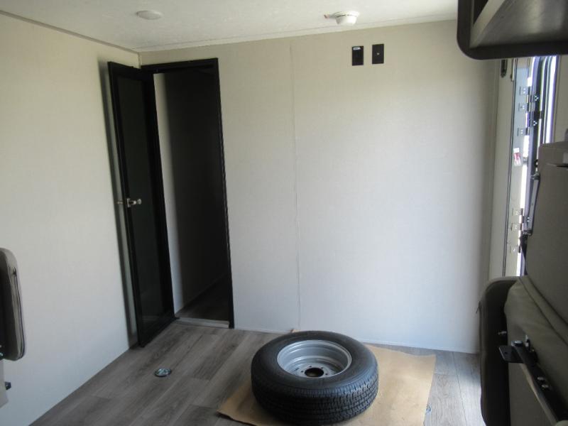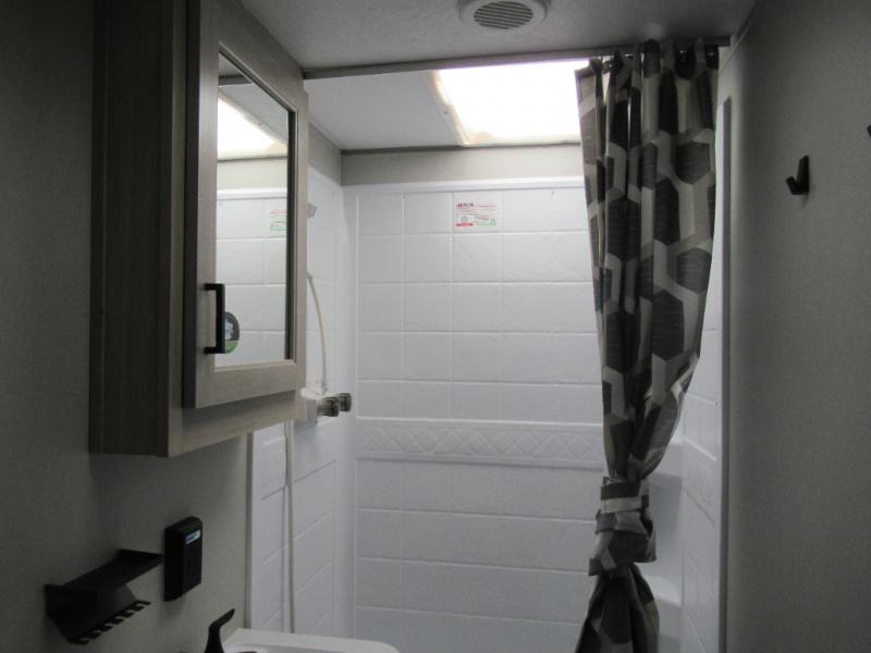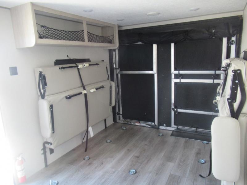 You're going to love camping in this dual entry toy hauler! The 11' garage can be shut off from the rest of the unit if your guests want a little privacy, and you can choose the optional party deck to the ramp door for more living space. The full bath includes a tub/shower, a medicine cabinet, plus a shower skylight to let natural light in. Head to the main living area to dine around the U-shaped dinette slide, or call it a night in the front bedroom with a queen bed. And you'll find plenty of storage space for your belongings, including overhead cabinets, dual bedroom wardrobes, plus exterior storage!