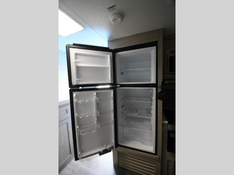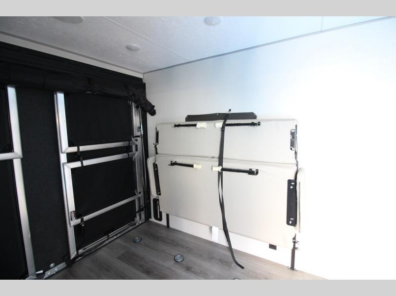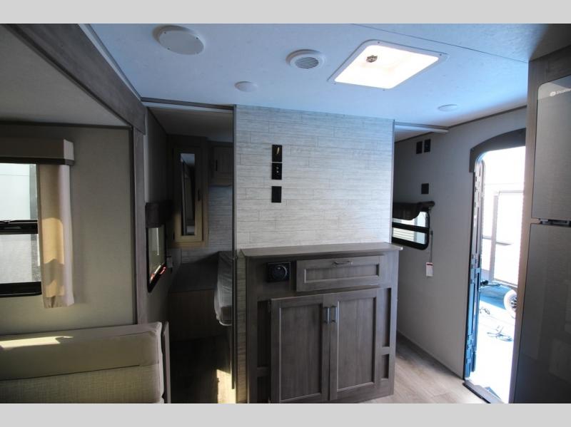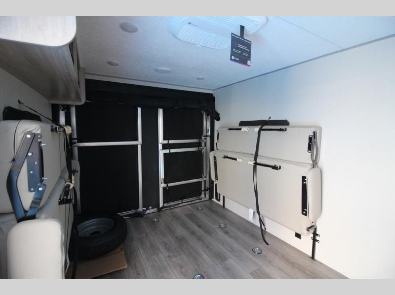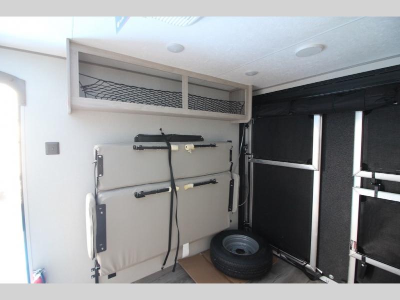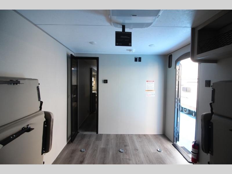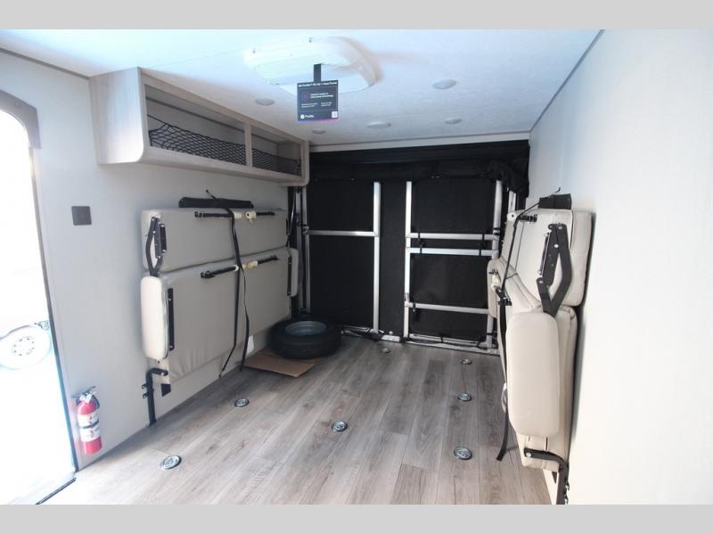 You're going to love camping in this dual entry toy hauler! The 11' garage can be shut off from the rest of the unit if your guests want a little privacy, and you can choose the optional party deck to the ramp door for more living space. The full bath includes a tub/shower, a medicine cabinet, plus a shower skylight to let natural light in. Head to the main living area to dine around the U-shaped dinette slide, or call it a night in the front bedroom with a queen bed. And you'll find plenty of storage space for your belongings, including overhead cabinets, dual bedroom wardrobes, plus exterior storage!