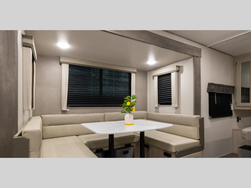 Perfect for family meals, game nights, or morning coffee. This spacious dinette slide opens up the living area beautifully.